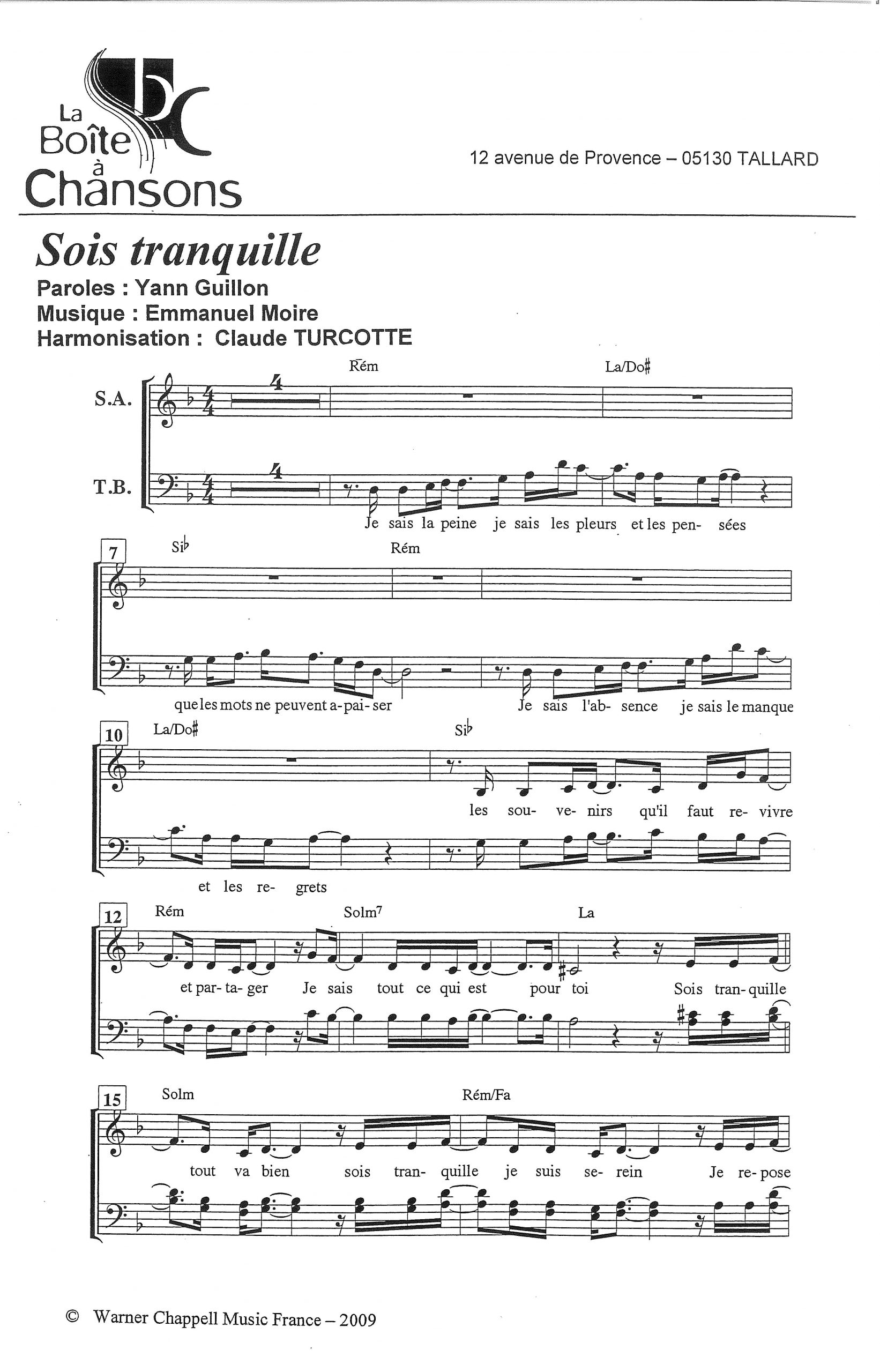 Paroles et musique : Y. Guillon / E. Moire Harmonisation : Claude TURCOTTE