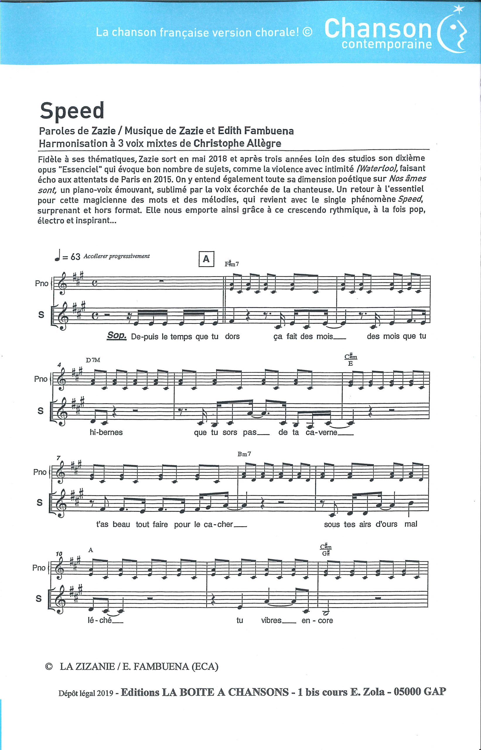 Paroles et musique : Zazie / E. Fambuena Harmonisation : Christophe Allègre
