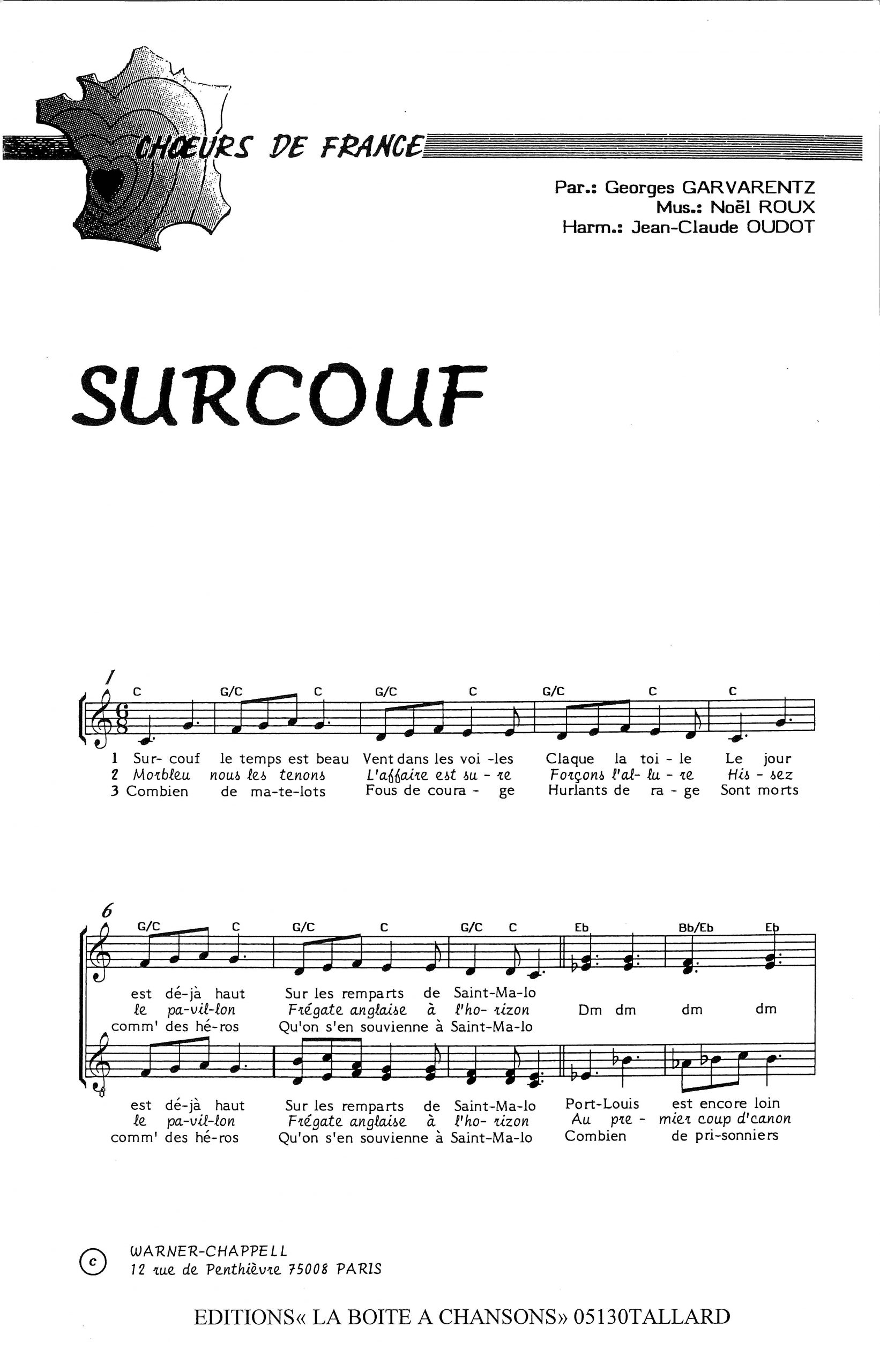 Paroles et musique de GARVARENTZ/ROUX Harmonisation : Jean Claude OUDOT