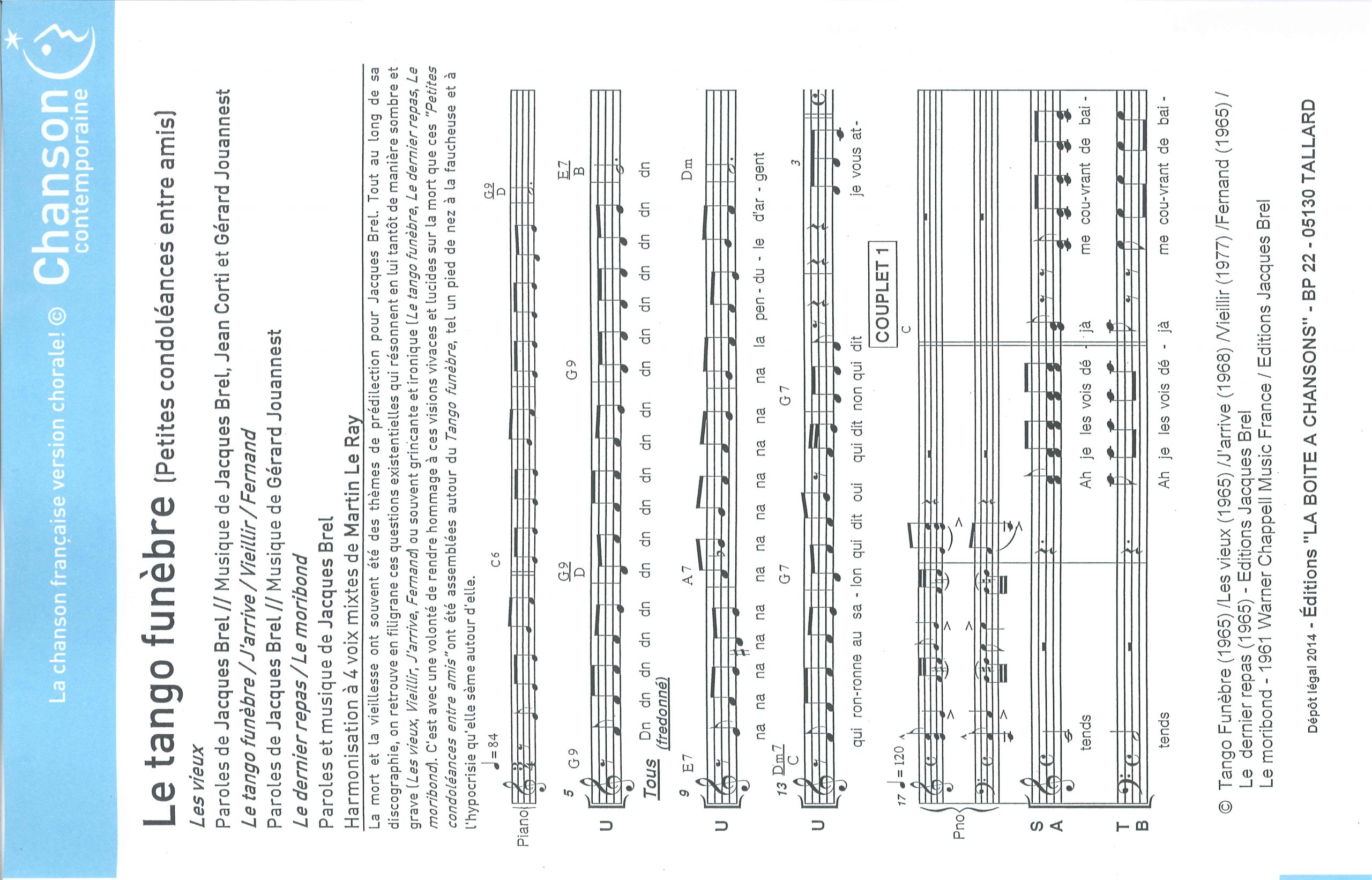 Paroles et musique de BREL Harmonisation : Martin LE RAY