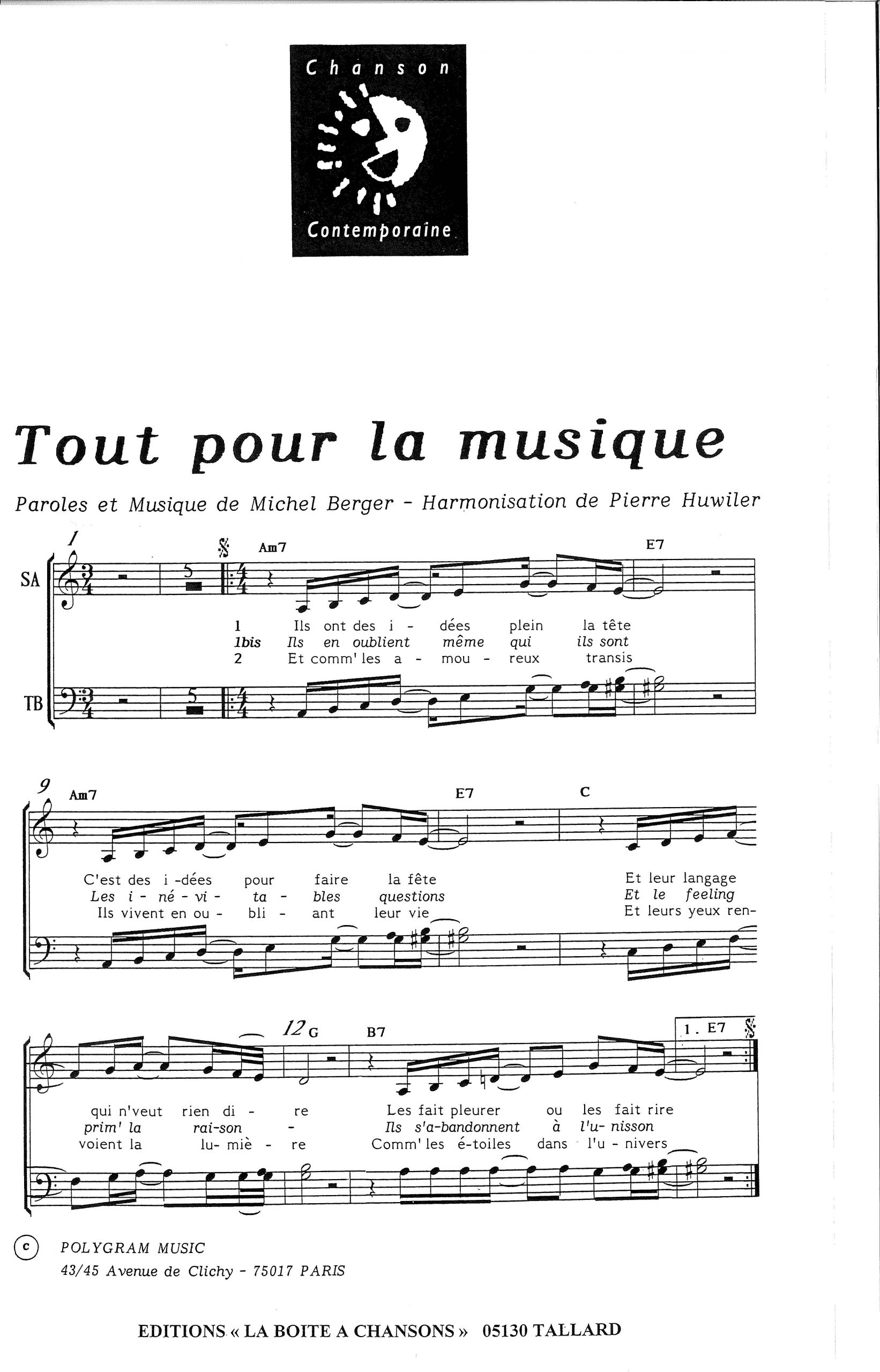 Paroles et musique de BERGER Harmonisation : Pierre HUWILER