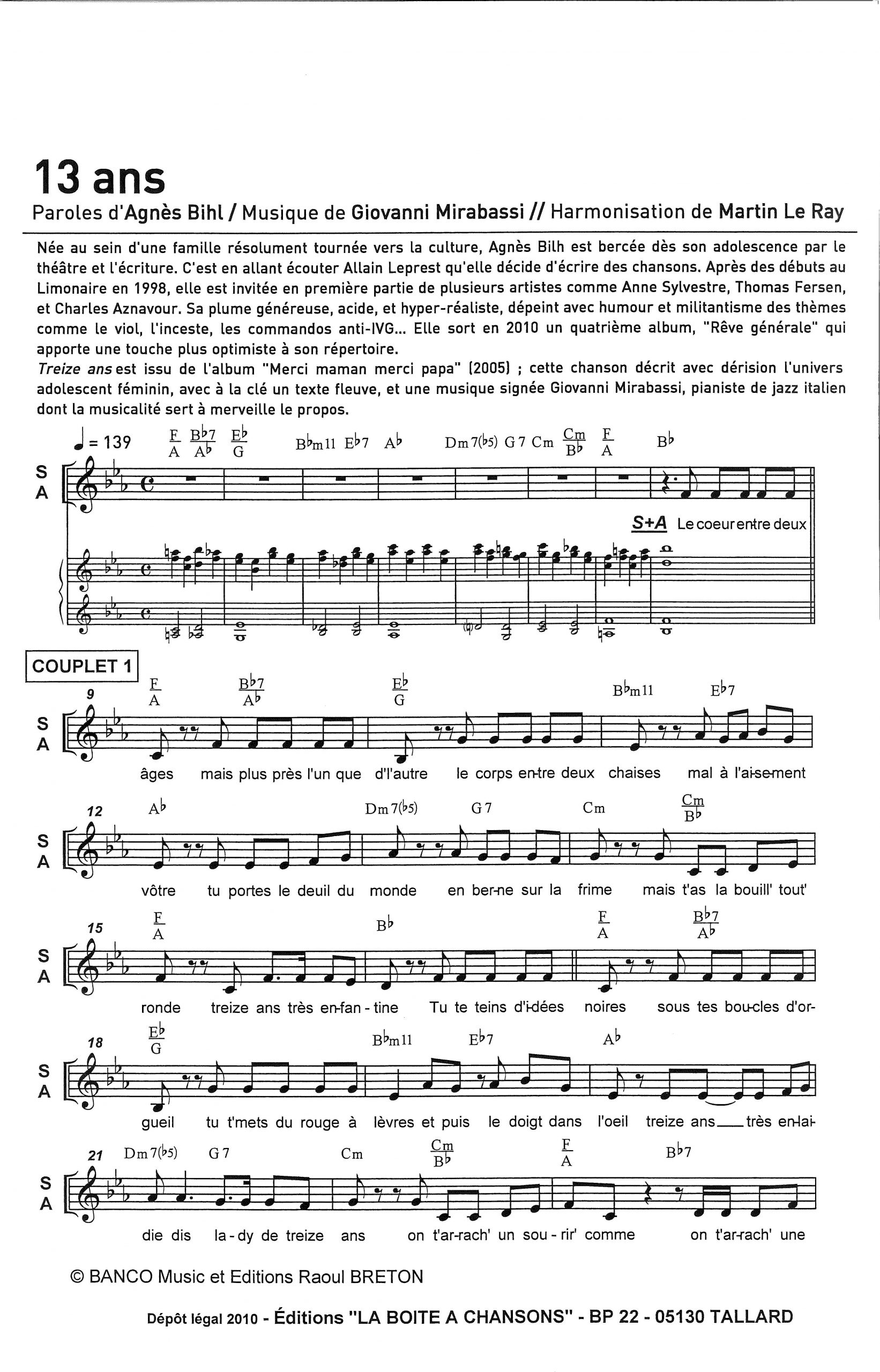 Paroles et musique de BILH/MIRABASSI Harmonisation : Martin LE RAY