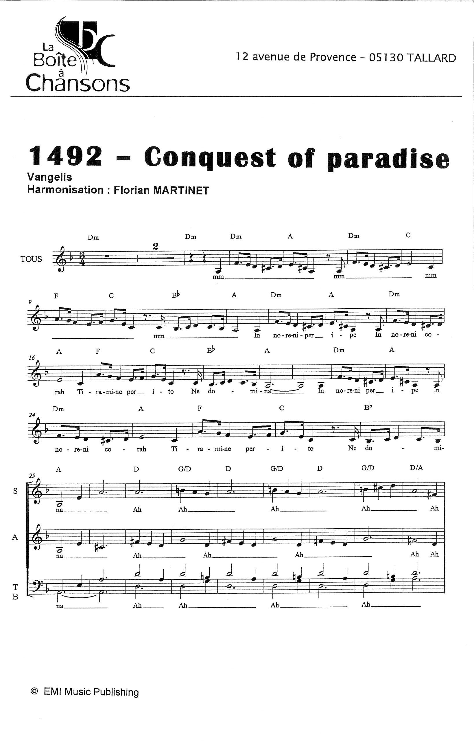 Paroles et musique de Vangelis Harmonisation : Florian MARTINET