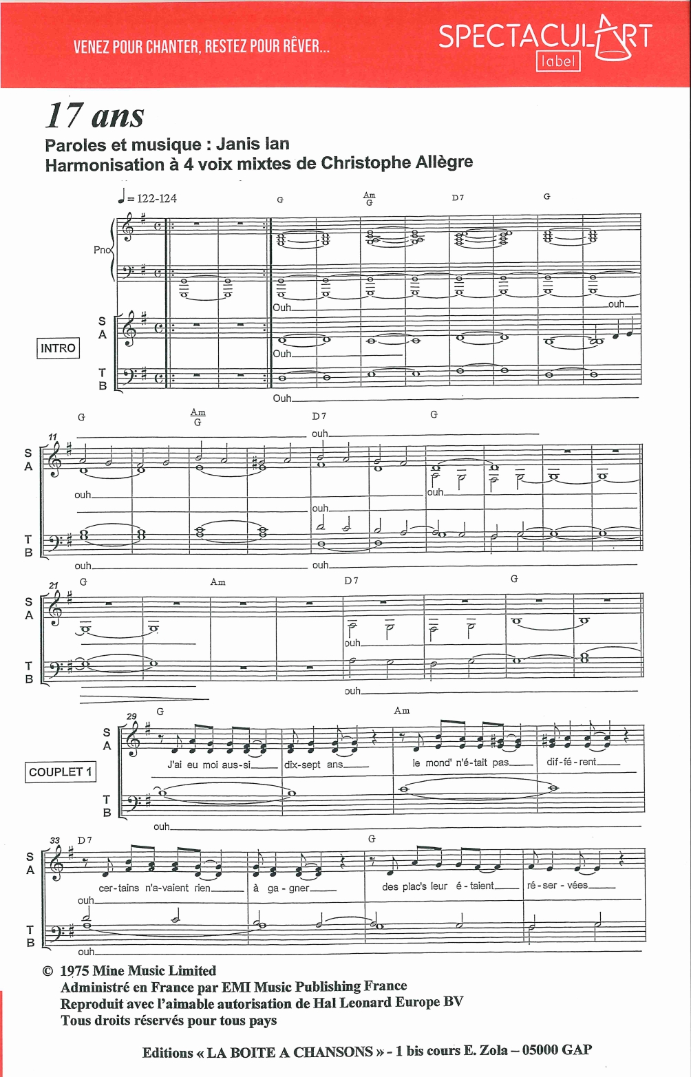Harmonisation à 4 voix mixtes de Christophe Allègre
