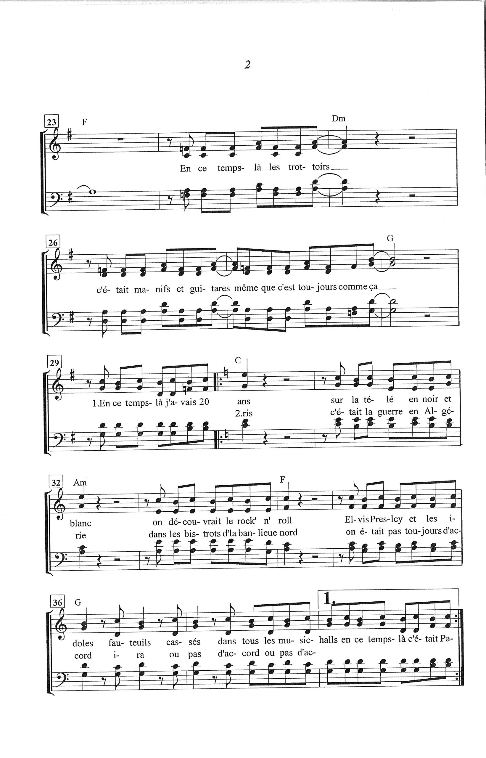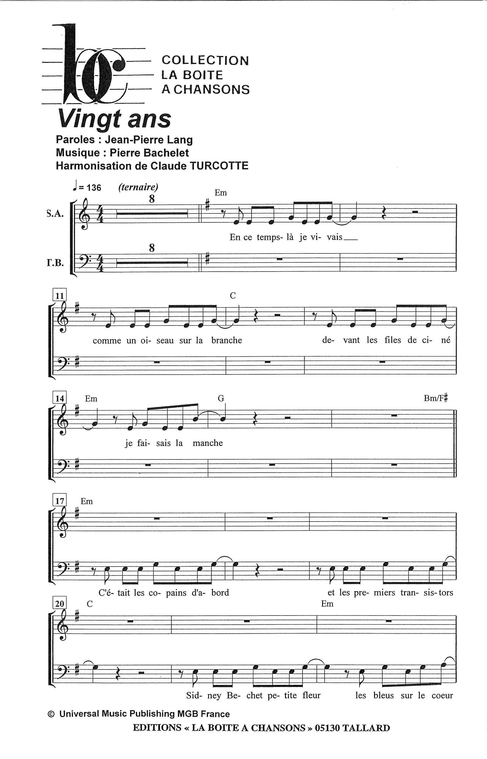 Paroles et musique Lang et Bachelet Harmonisation : Claude TURCOTTE