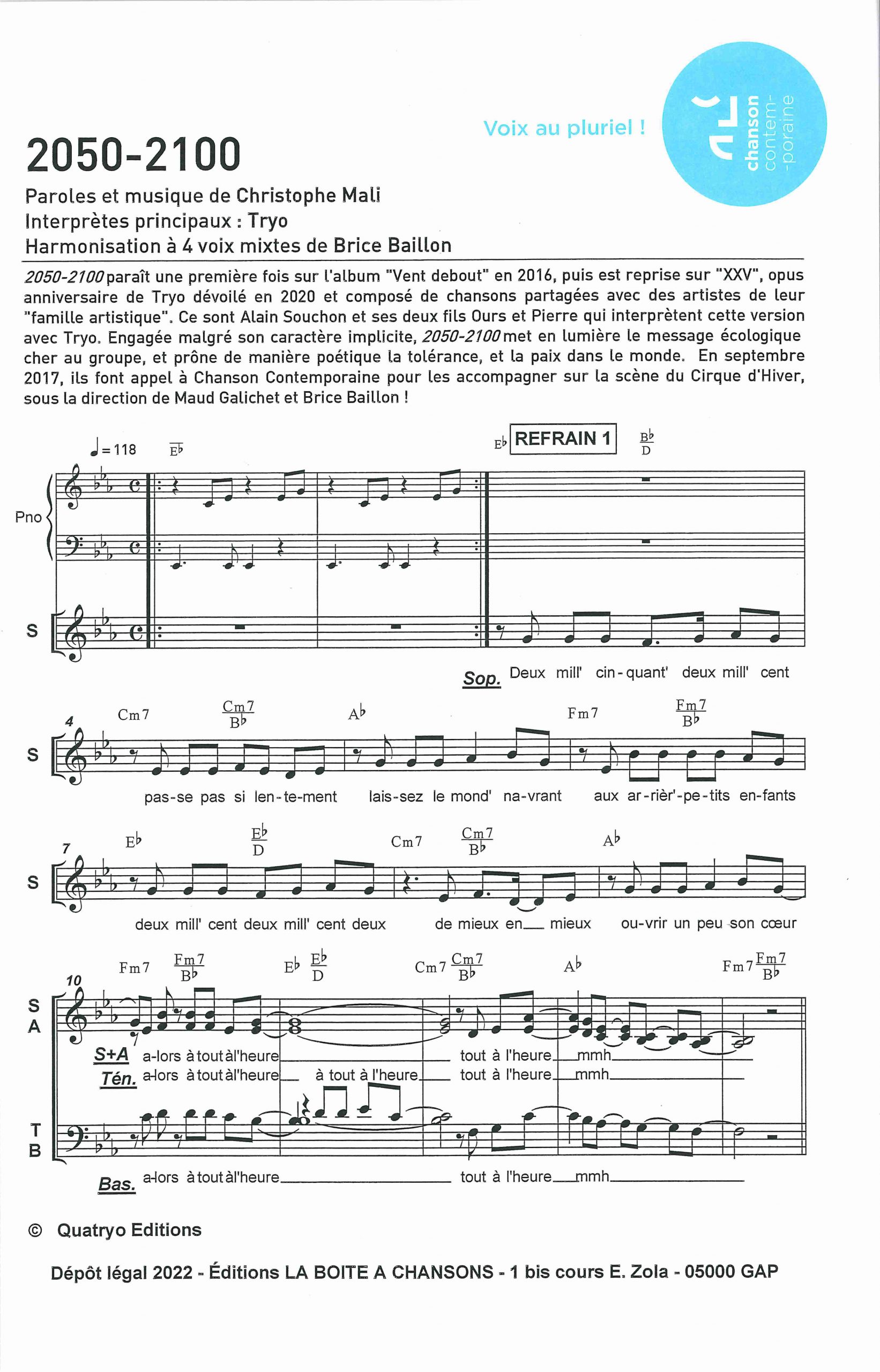 Paroles et musique : C. Mali Harmonisation : Brice Baillon