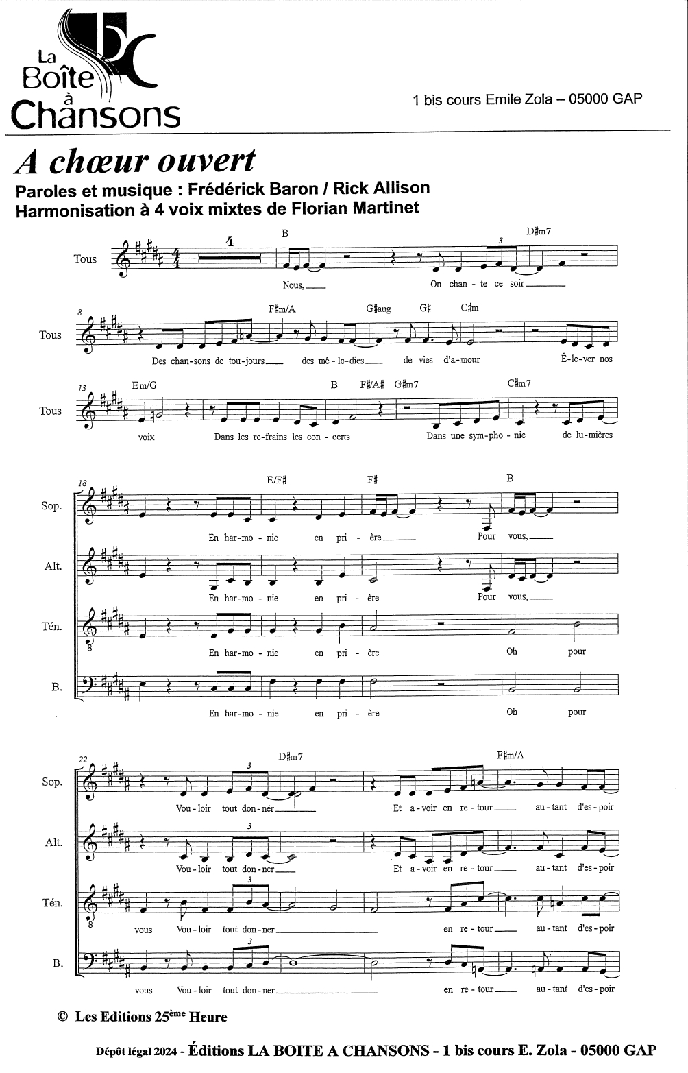 Harmonisation à 4 voix mixtes de Florian Martinet