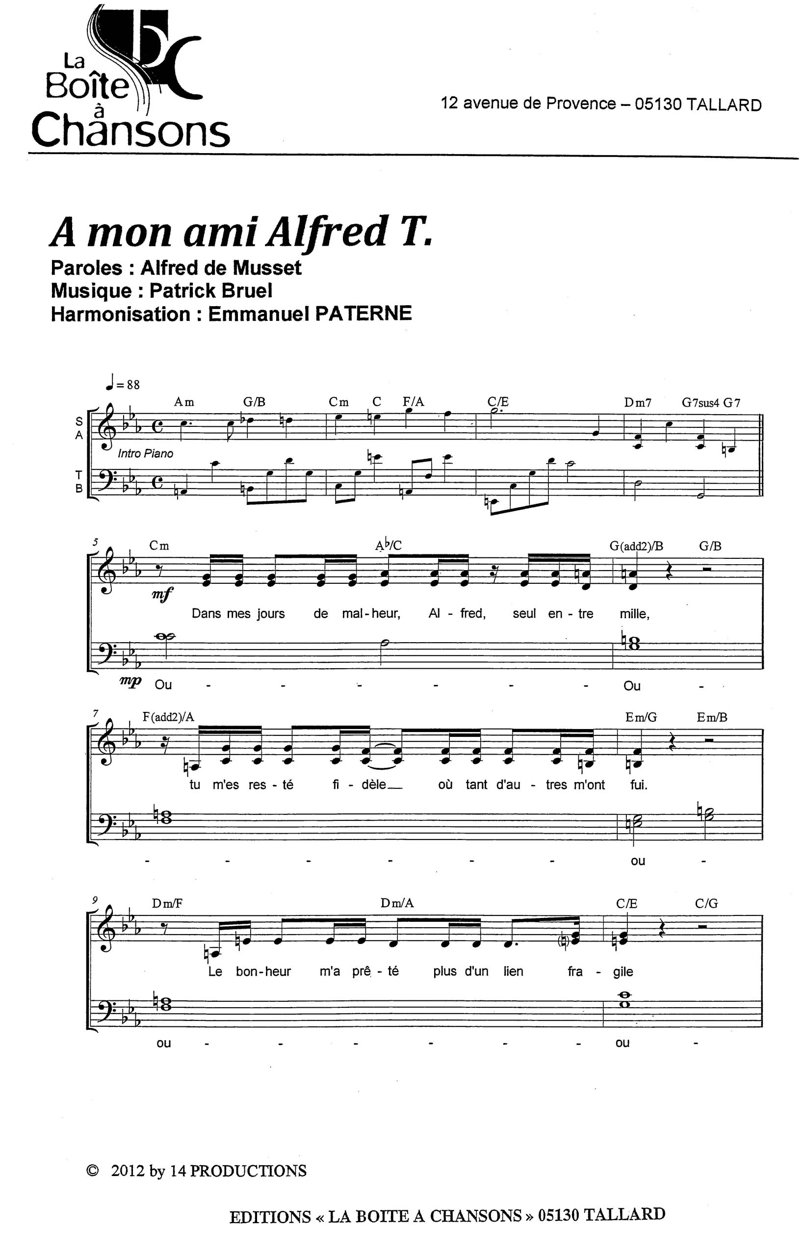 Paroles et musique de DE MUSSET/BRUEL Harmonisation : Emmanuel PATERNE