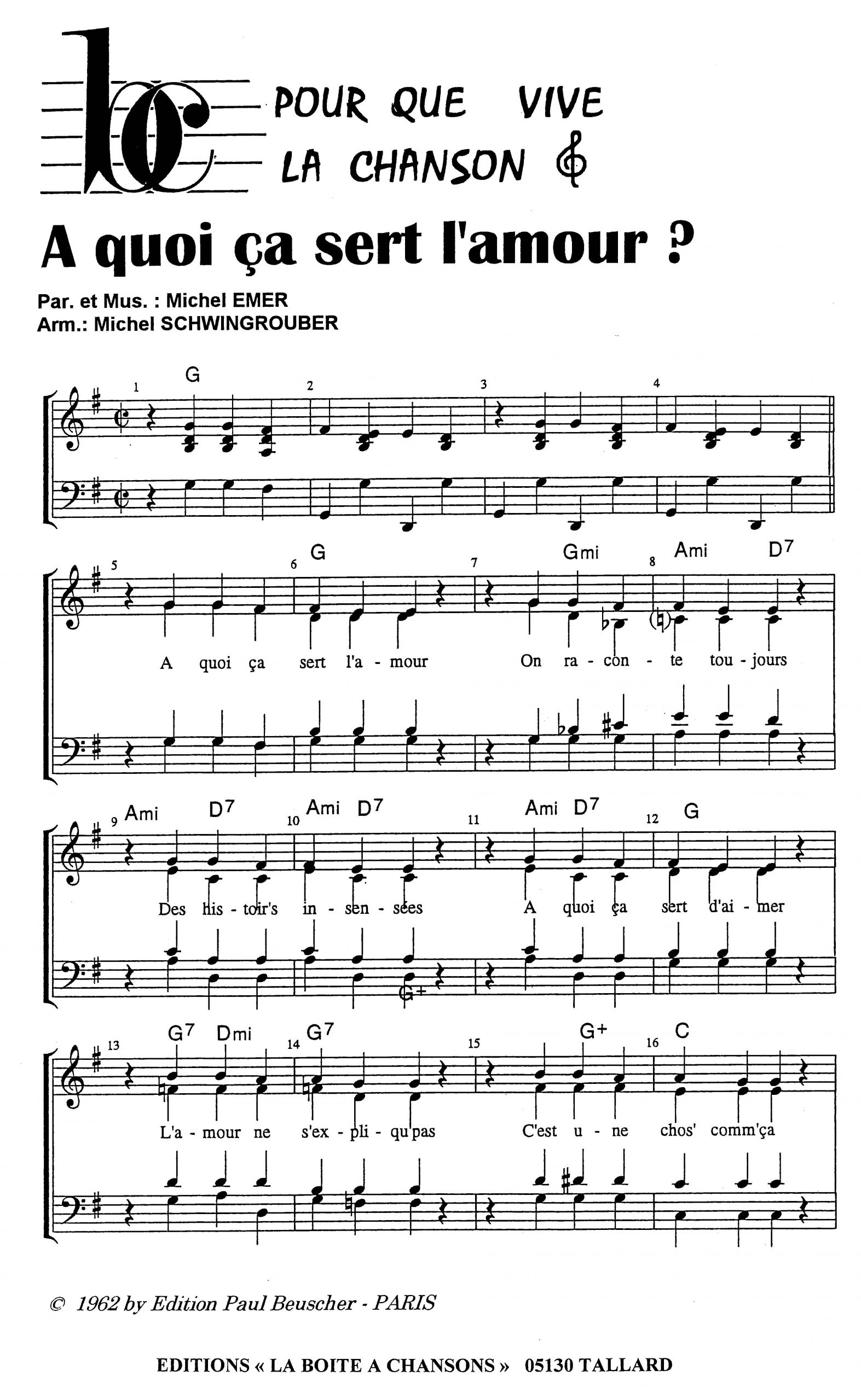 Paroles et musique de EMER Harmonisation : Michel SCHWINGROUBER