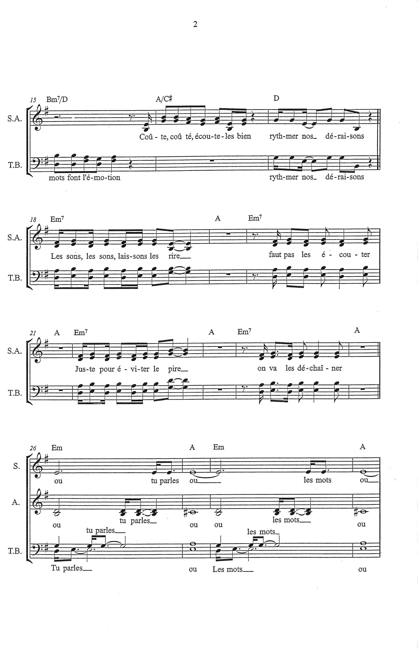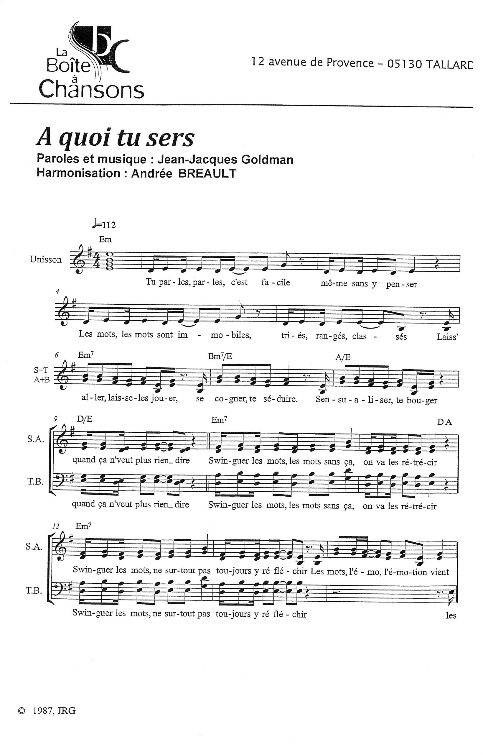 Paroles et musique : GOLDMAN Harmonisation : Andrée BREAULT