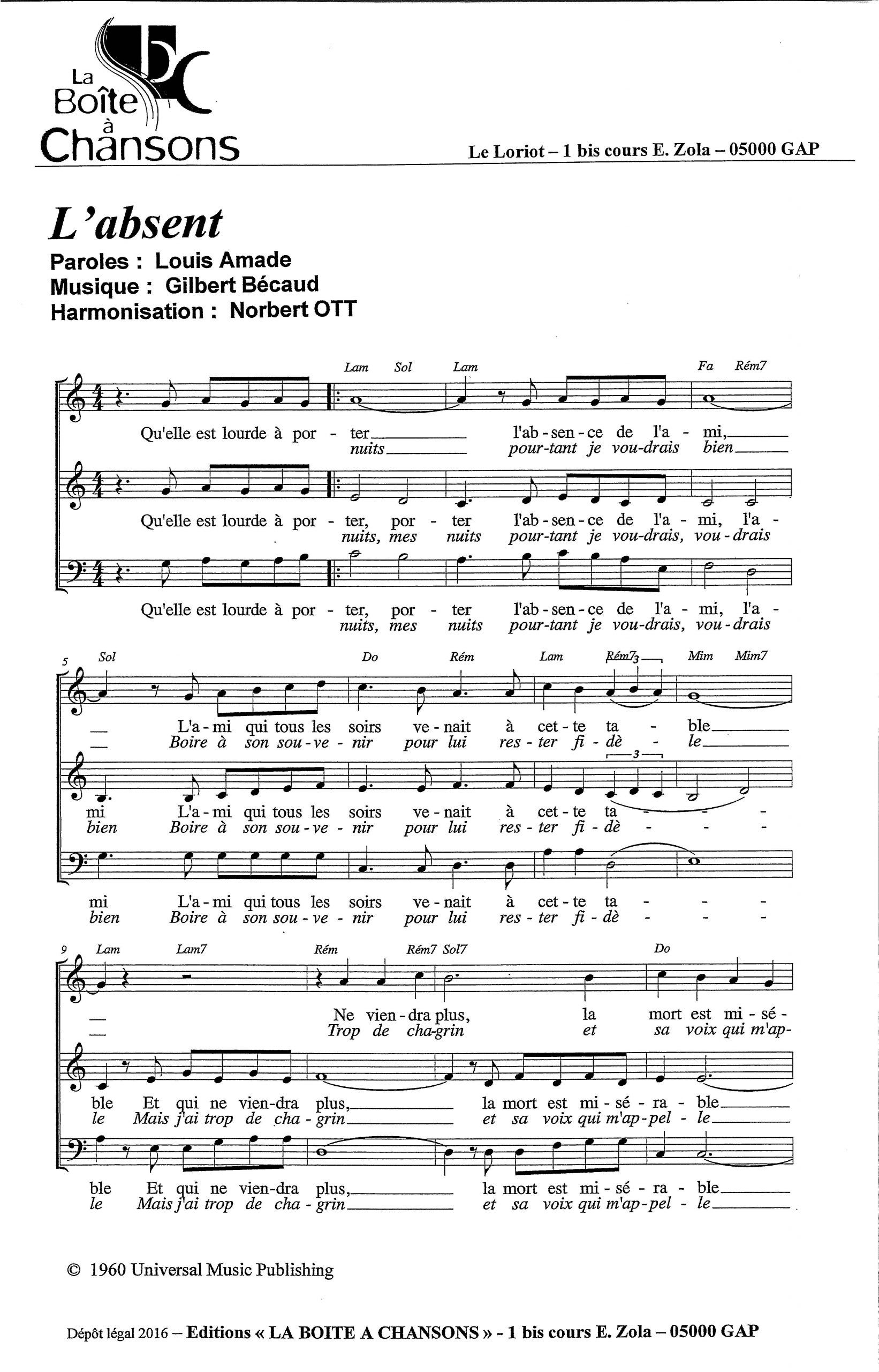 Paroles et musique : L. Amade / G. Bécaud Harmonisation : Norbert OTT