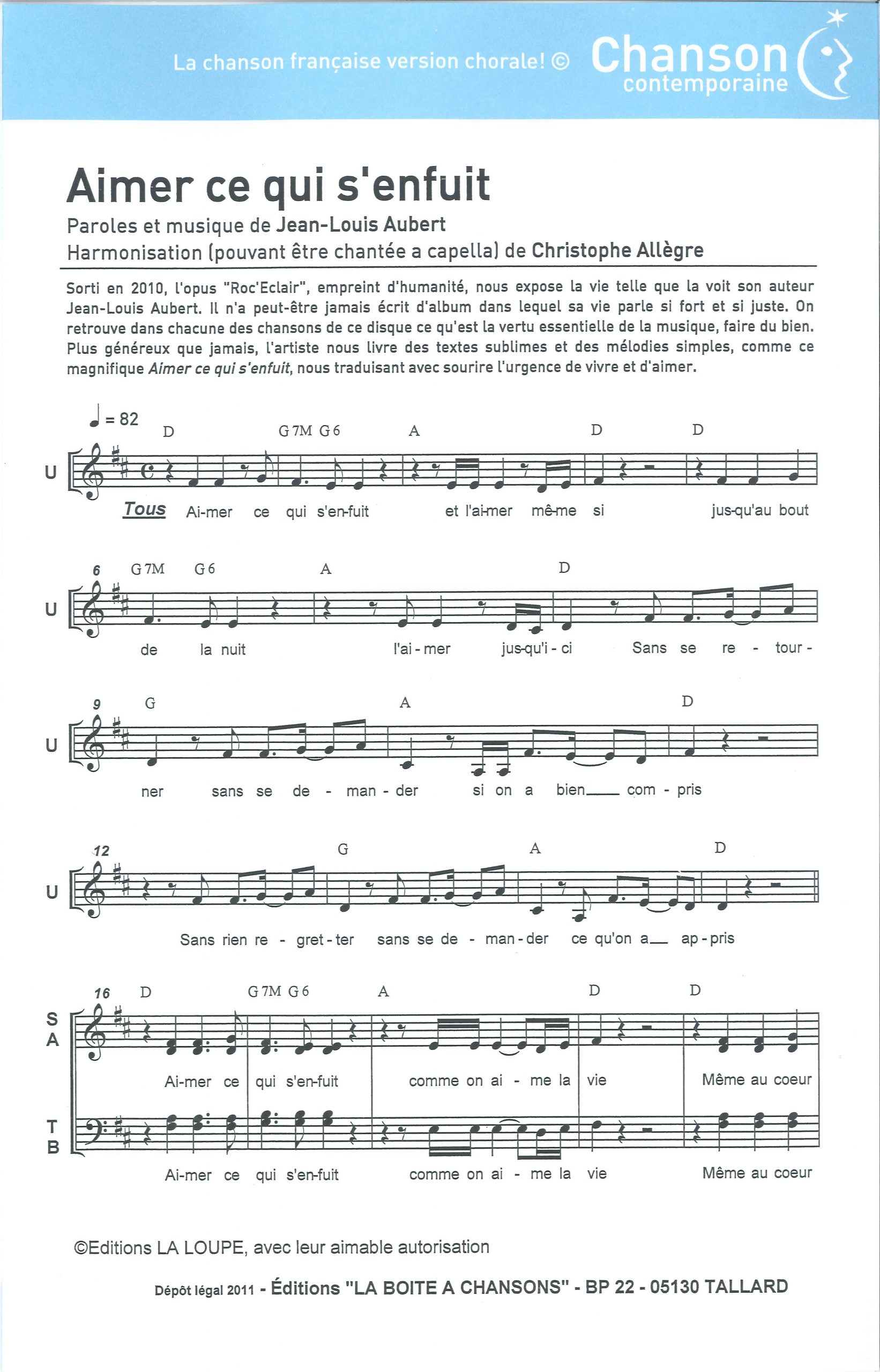 Paroles et musique de AUBERT Harmonisation : Christophe ALLEGRE