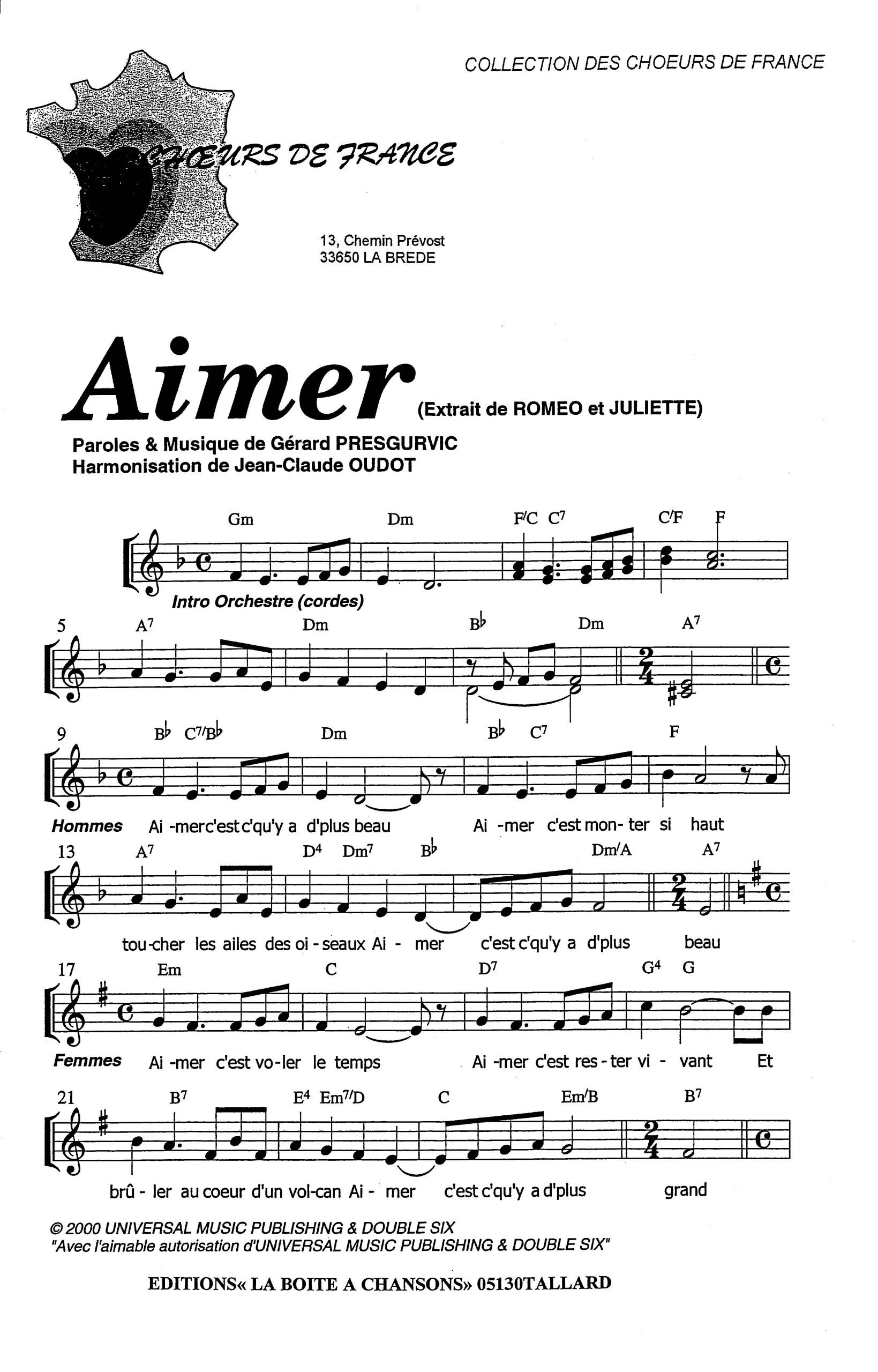 Paroles et musique de PRESGURVIC Harmonisation : Jean Claude OUDOT