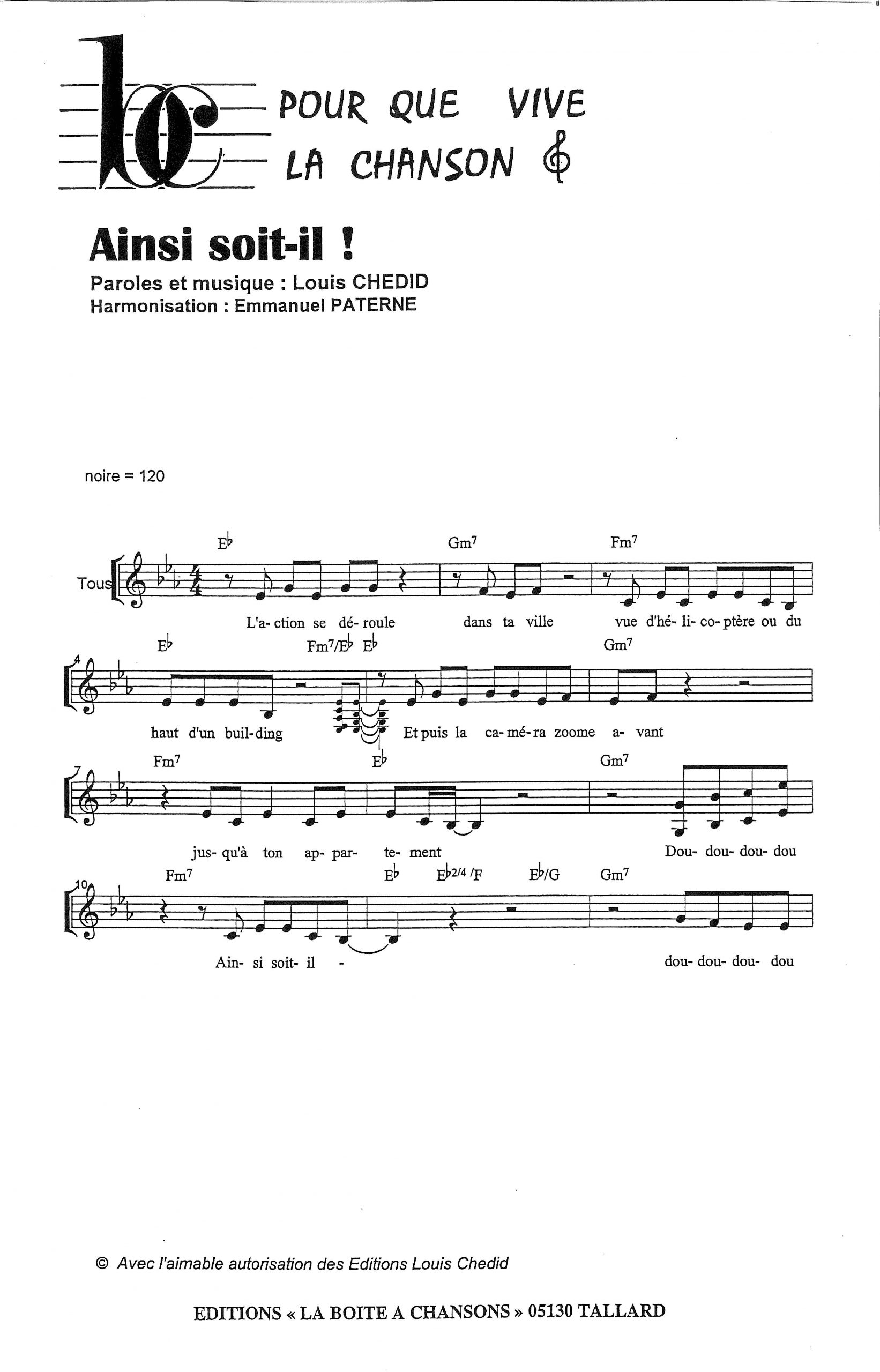 Paroles et musique de CHEDID Harmonisation : Emmanuel PATERNE