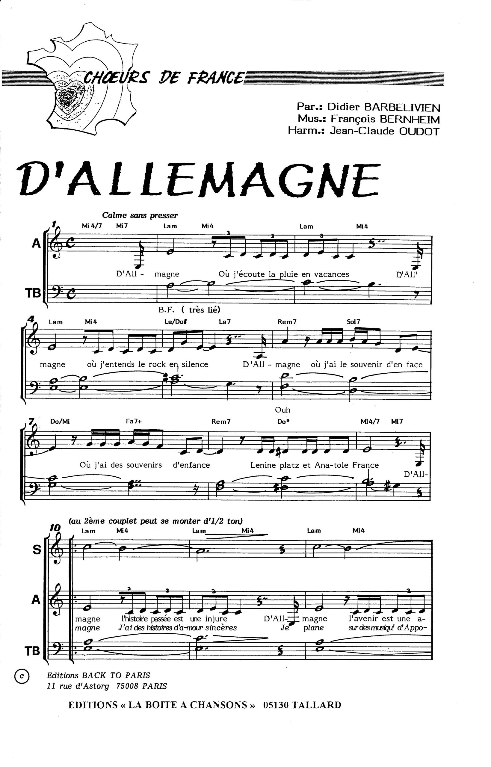 Paroles et musique de BARBELIVIEN/BERNHEIM Harmonisation : Jean Claude OUDOT