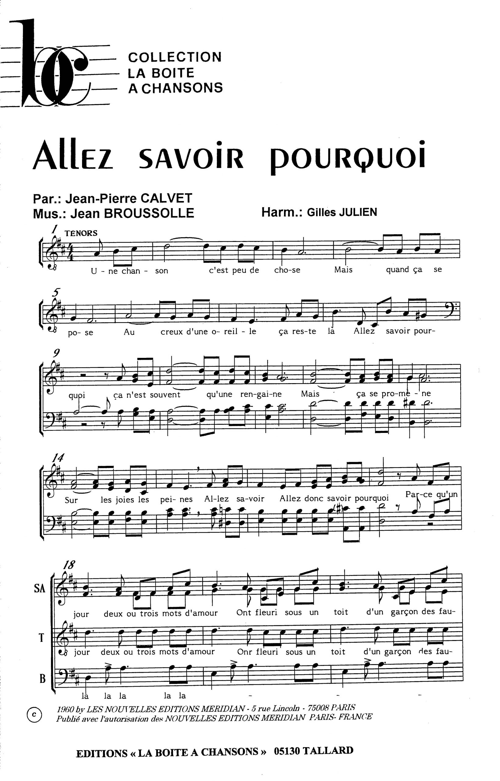 Paroles et musique de CALVET/BROUSSOLLE Harmonisation G. Julien