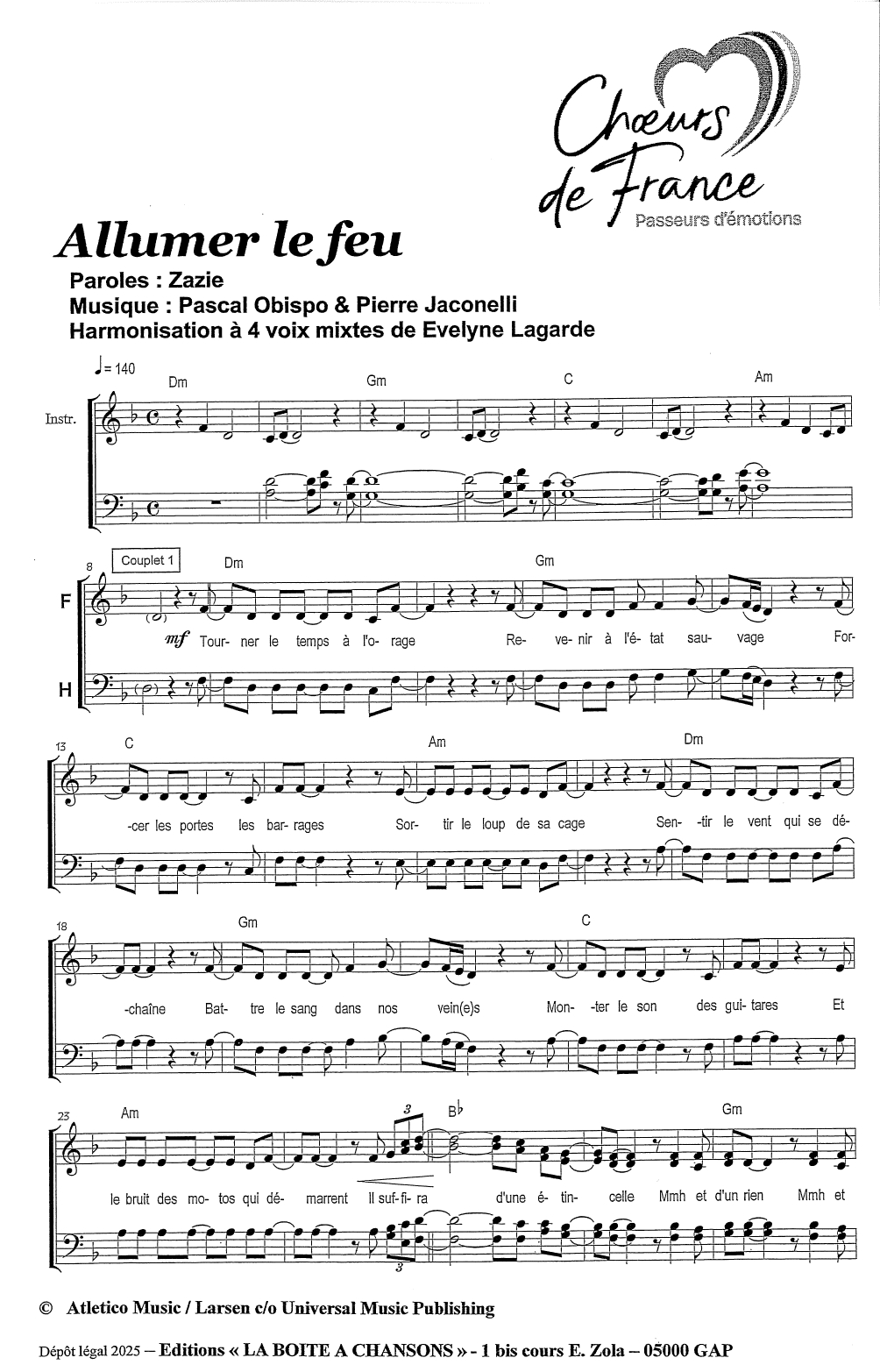 Harmonisation à 4 voix mixtes de Evelyne Lagarde