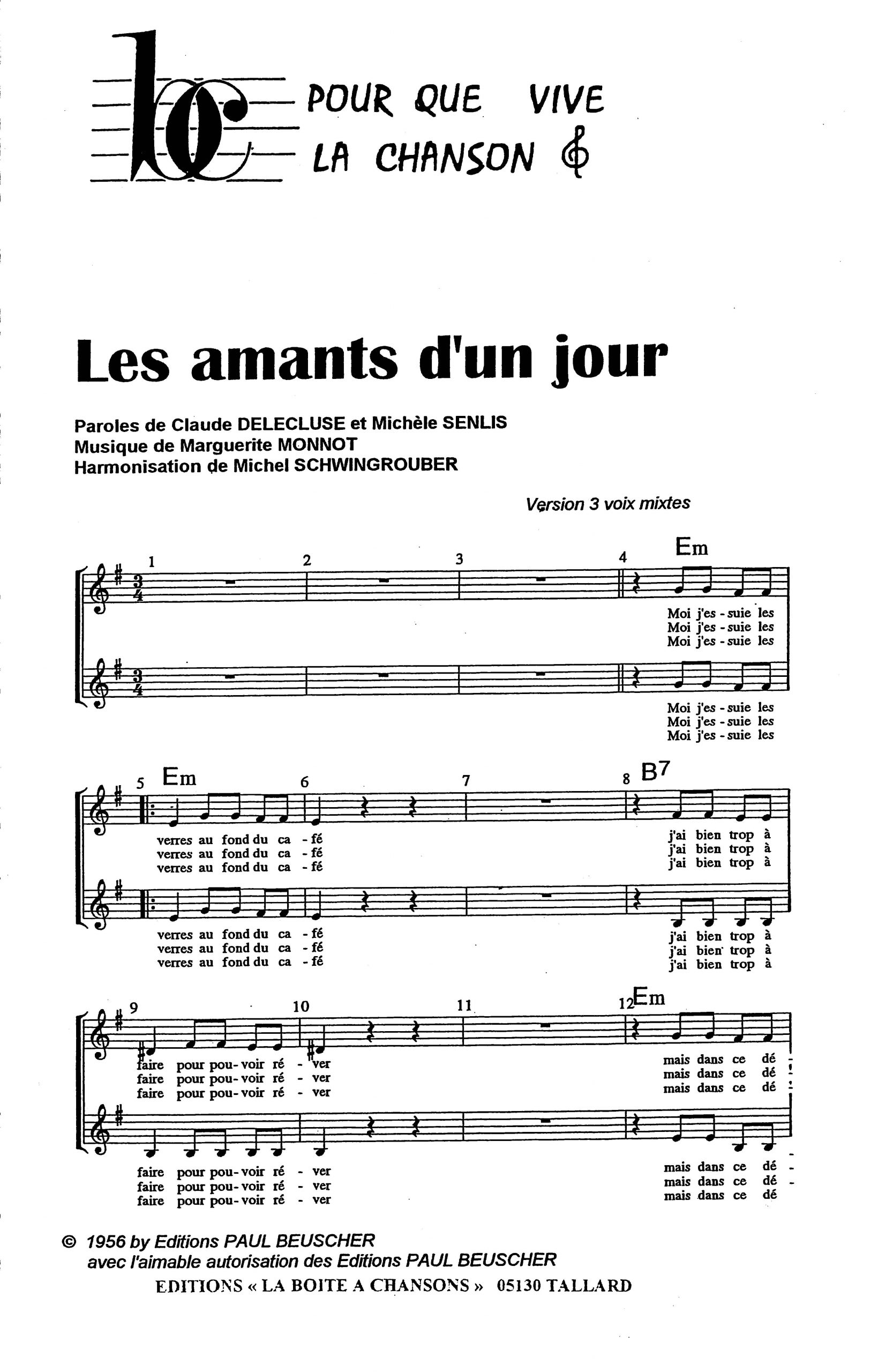 Paroles et musique de DELECLUSE/SENLIS/MONNOD Harmonisation : Michel SCHWINGROUBER