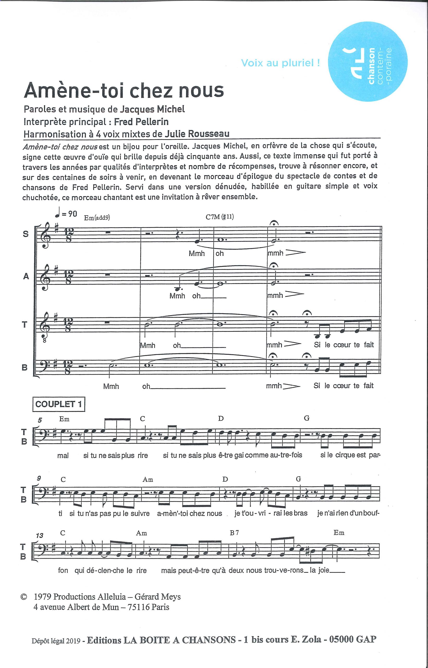 Paroles et musique : J. Michel / F. Pellerin Harmonisation : Julie Rousseau