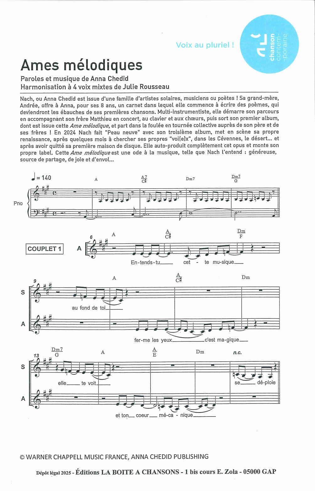 Harmonisation à 4 voix mixtes de Julie Rousseau