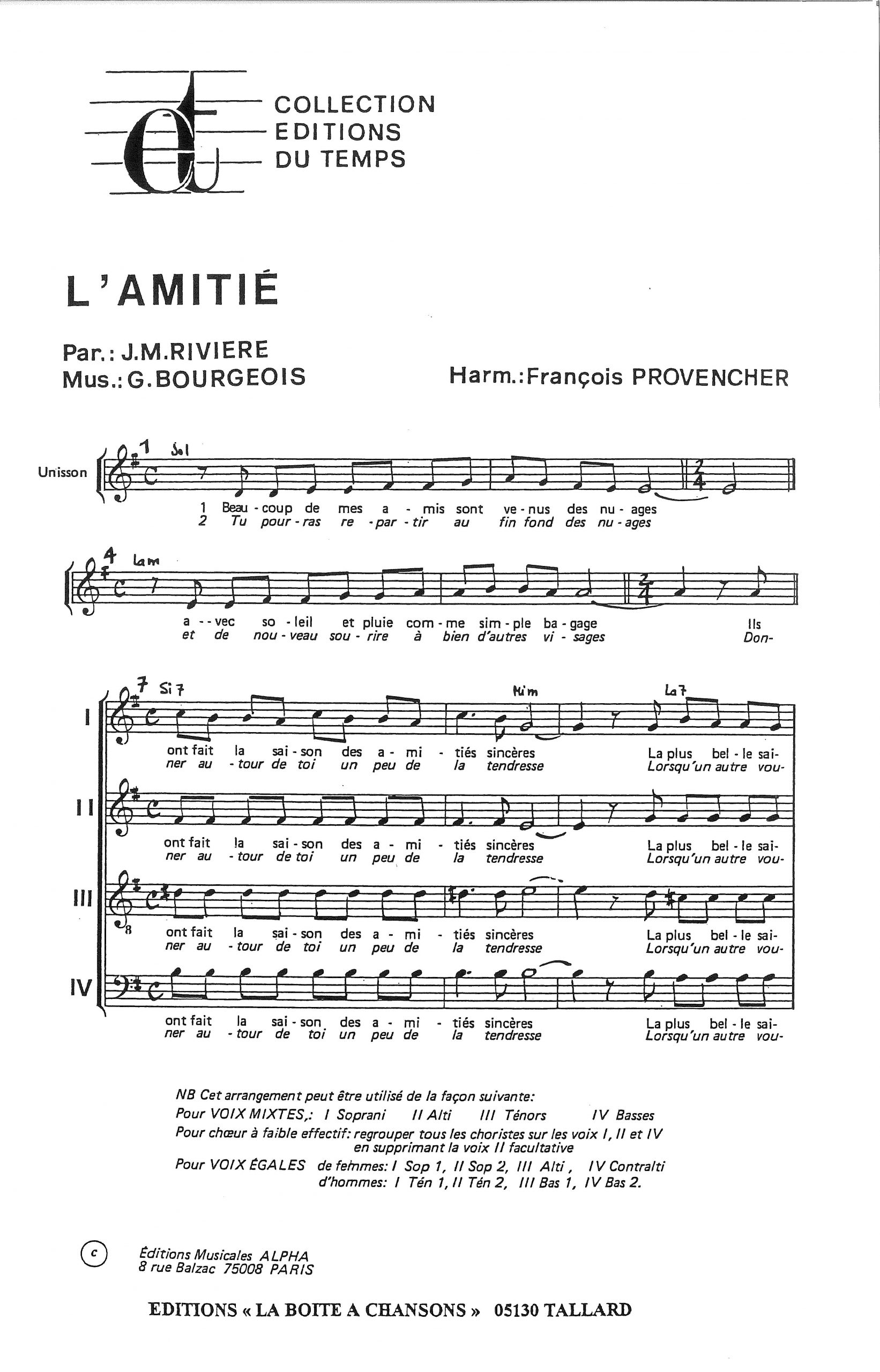 Paroles et musique : Rivière / Bourgeois Harmonisation : François Provencher