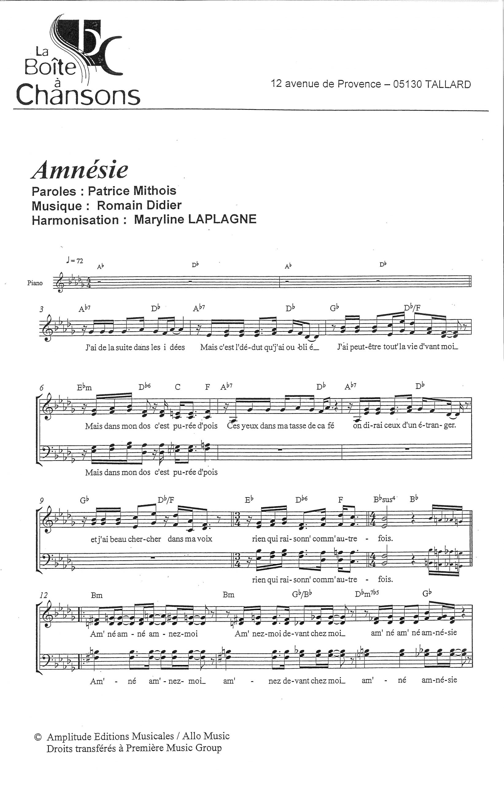 Paroles et musique : P. Mithois / R. Didier Harmonisation : Maryline LAPLAGNE