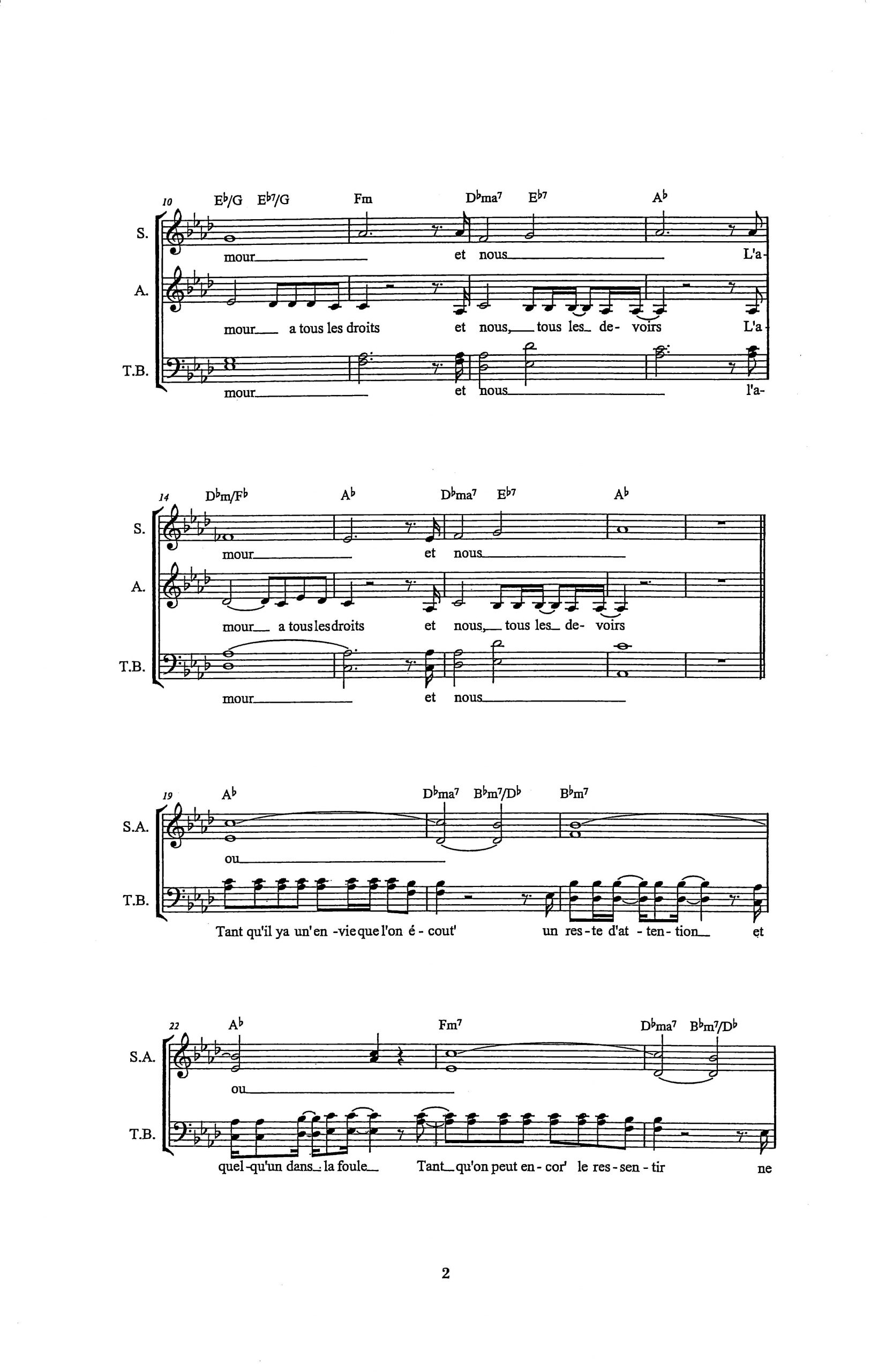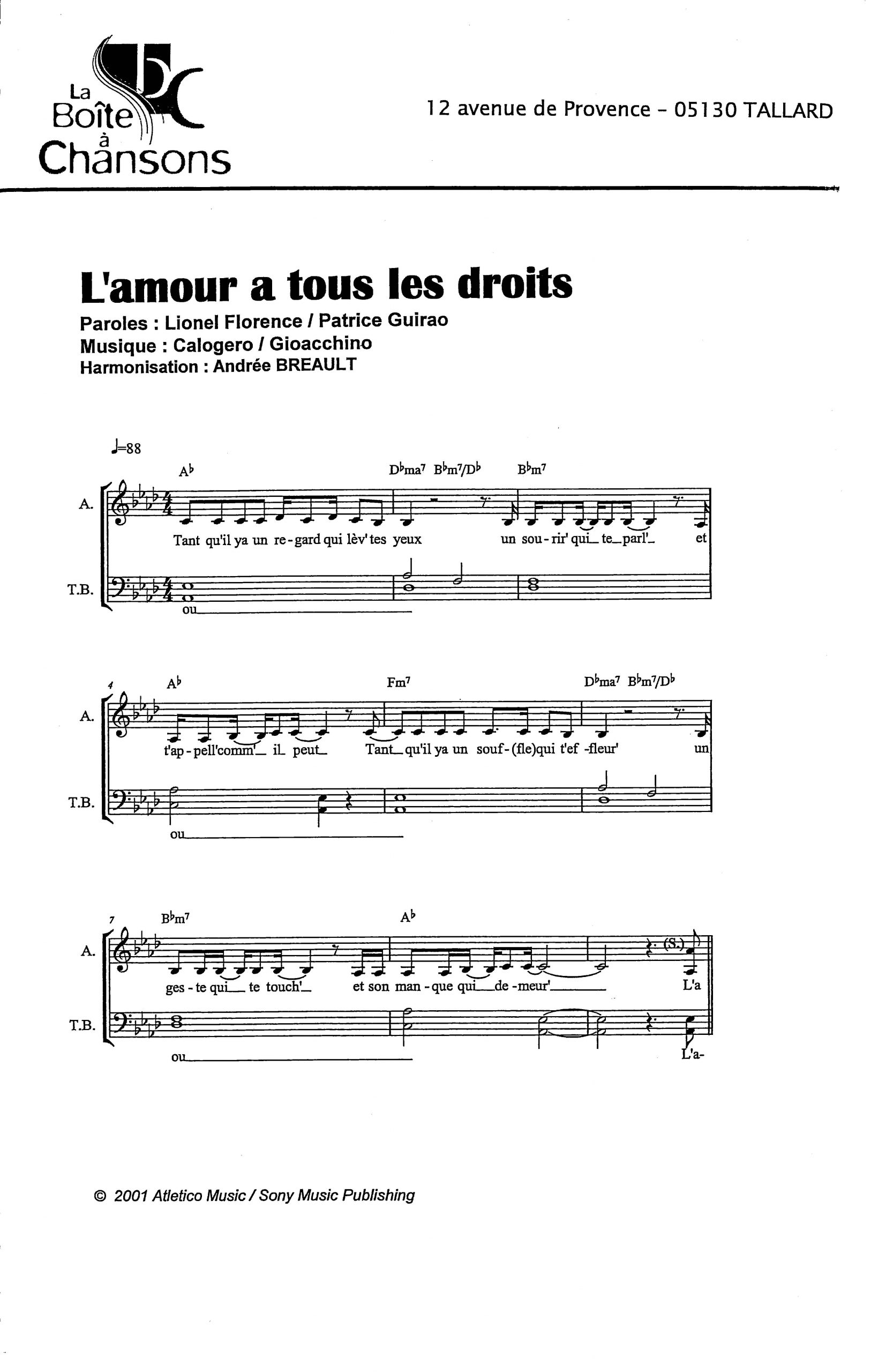 Paroles et musique de FLORENCE/GUIRAO/CALOGERO Harmonisation : Andrée BREAULT