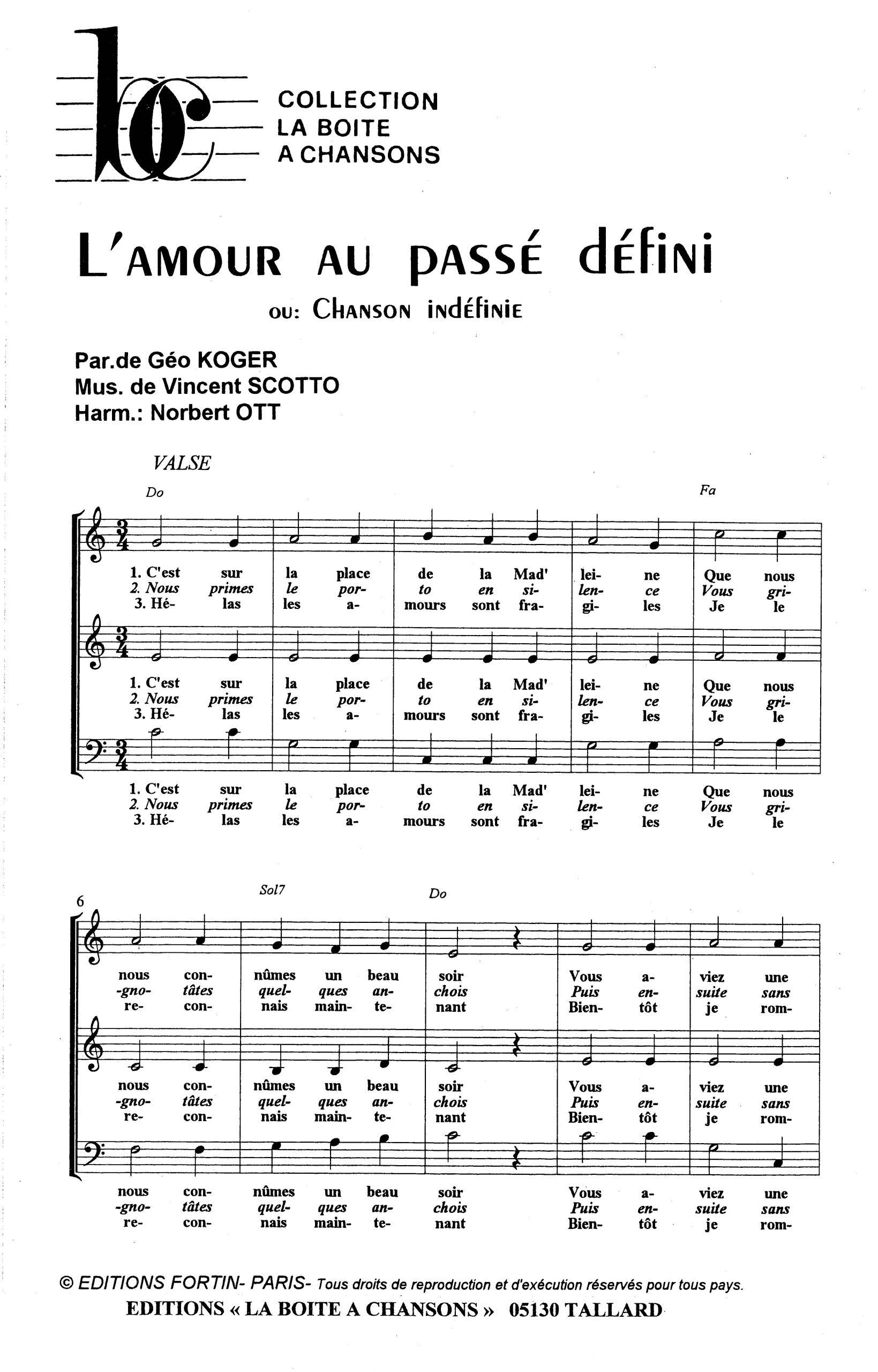 Paroles et musique de KOGER/SCOTTO Harmonisation : Norbert OTT