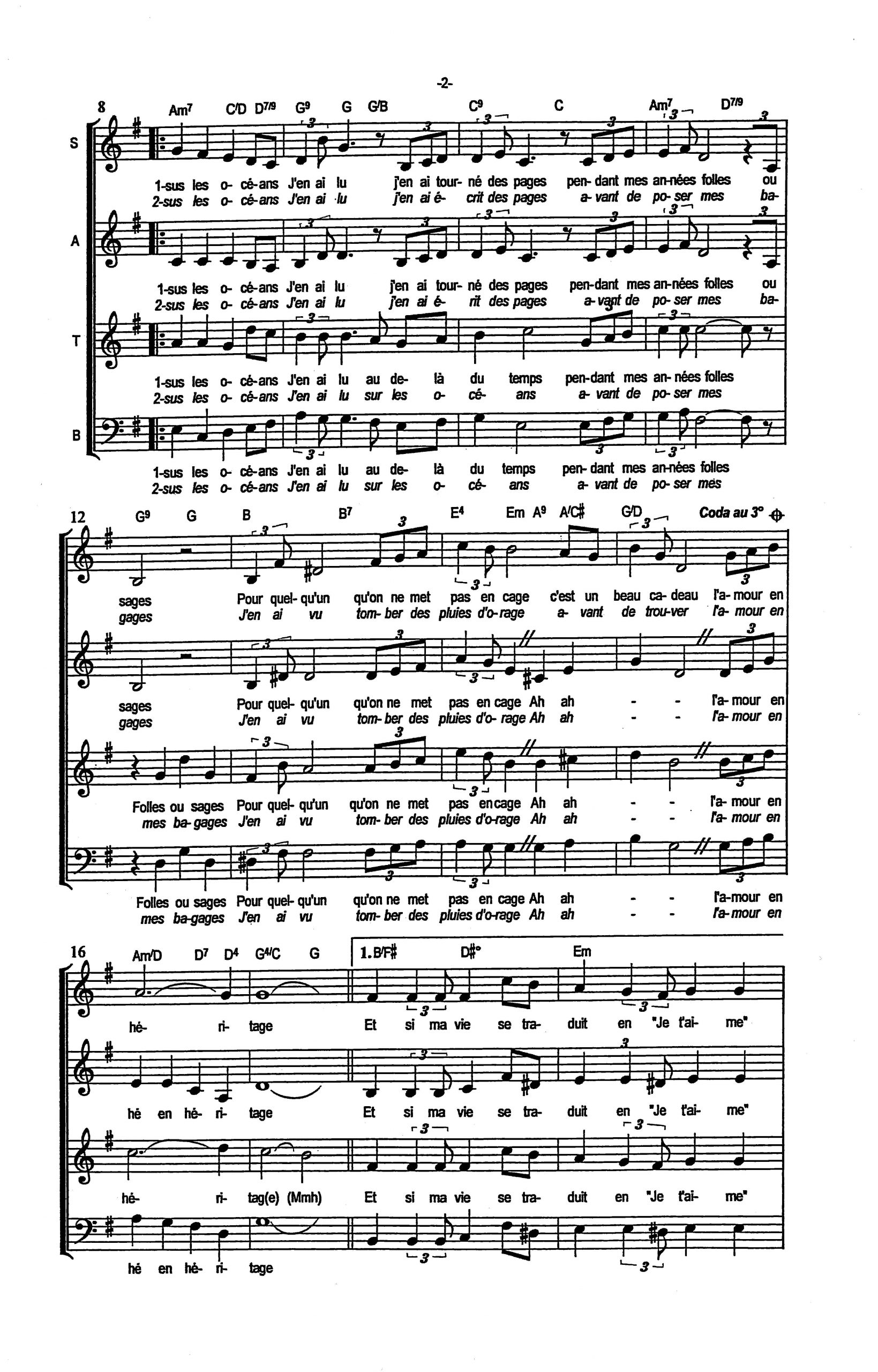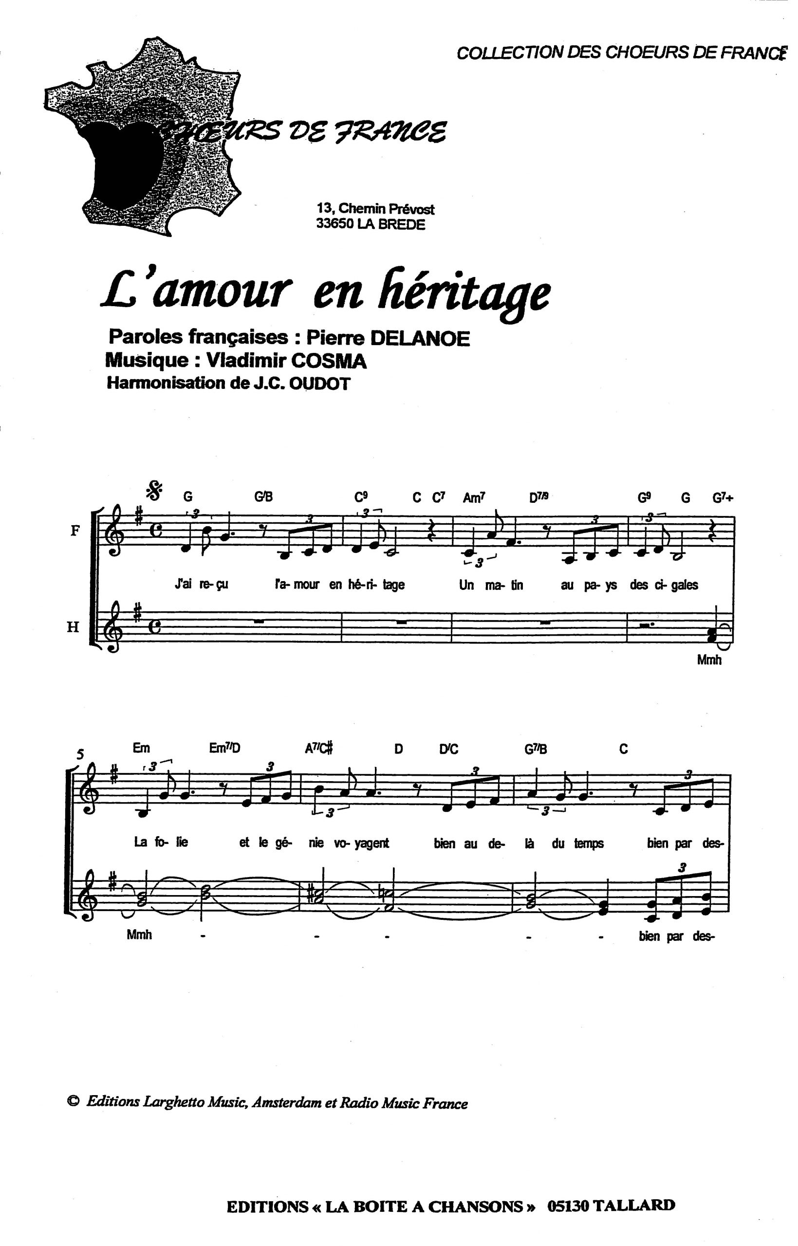 Paroles et musique Delanoe et Cosma Harmonisation : Jean Claude OUDOT
