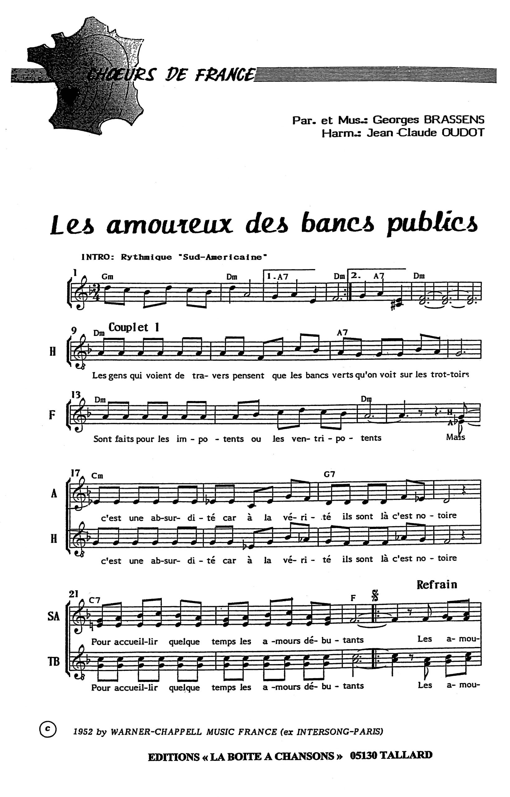 Paroles et musique de BRASSENS Harmonisation : Jean Claude OUDOT