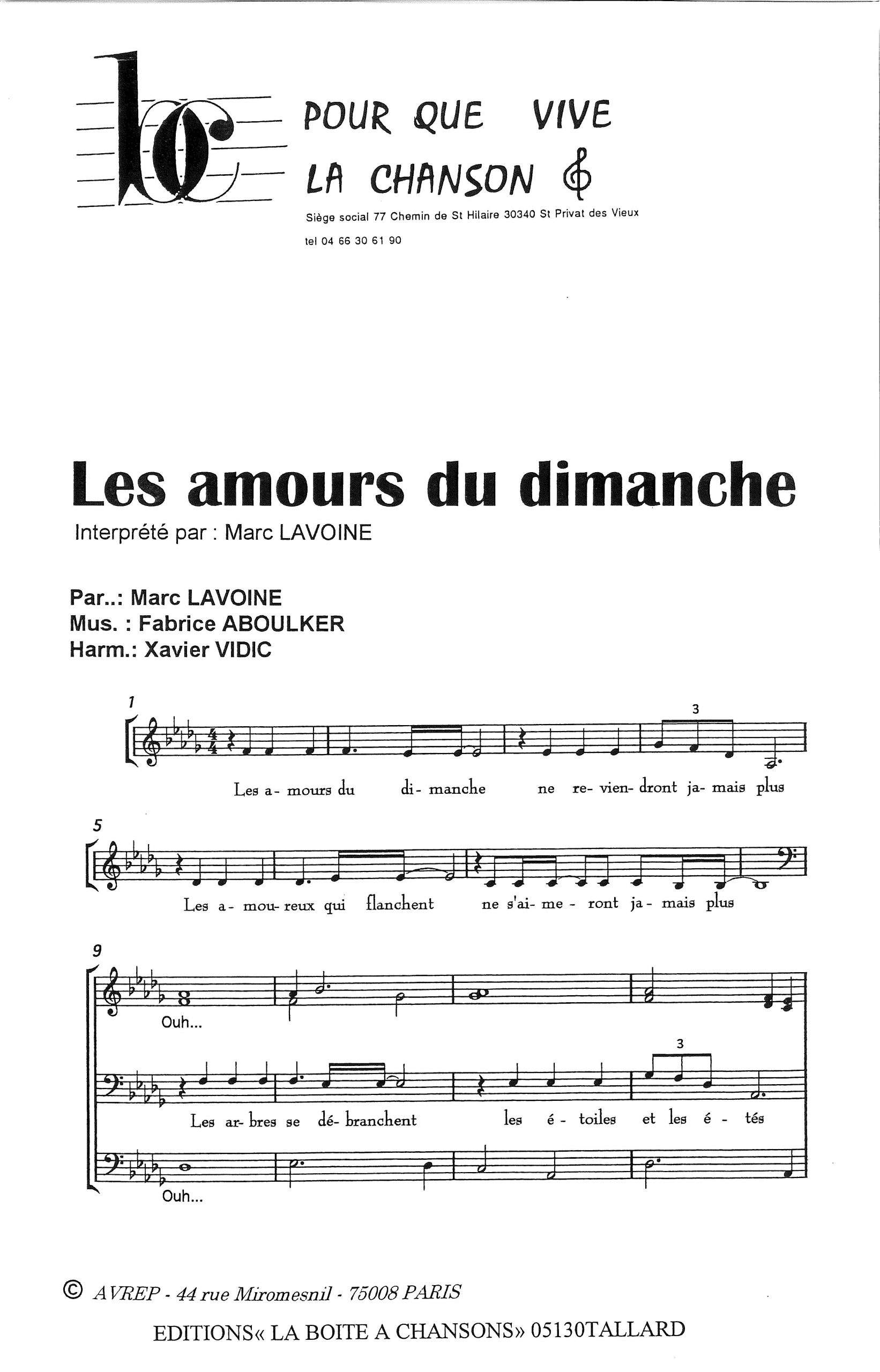 Paroles et musique de LAVOINE/ABOULKER Harmonisation : Xavier VIDIC