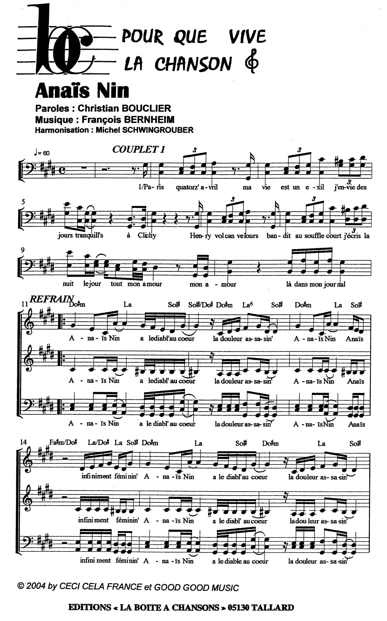 Paroles et musique de BOUCLIER / BERHEIM Harmonisation : Michel SCHWINGROUBER