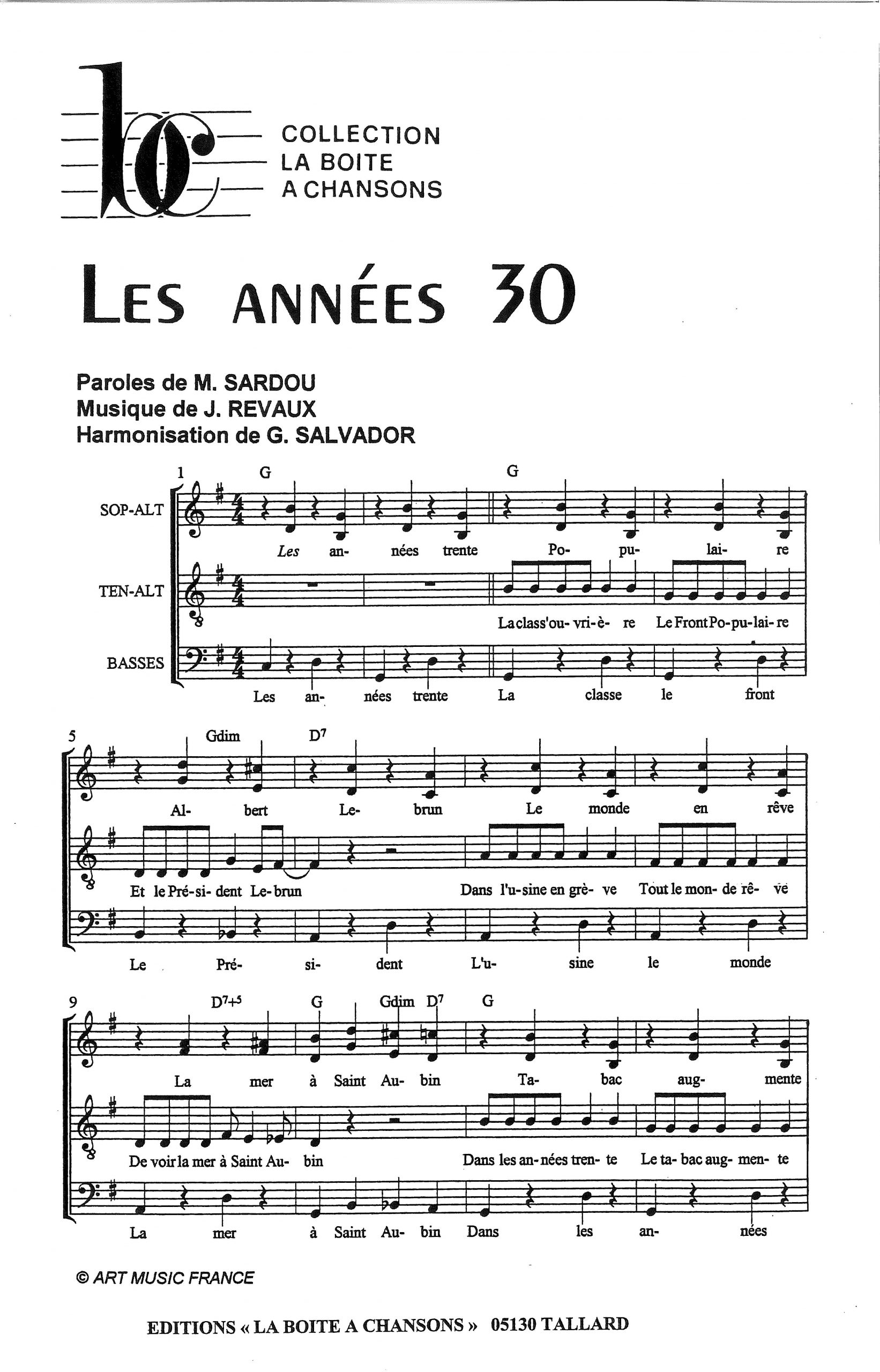 Paroles et musique de SARDOU/REVAUX Harmonisation : Germinal SALVADOR