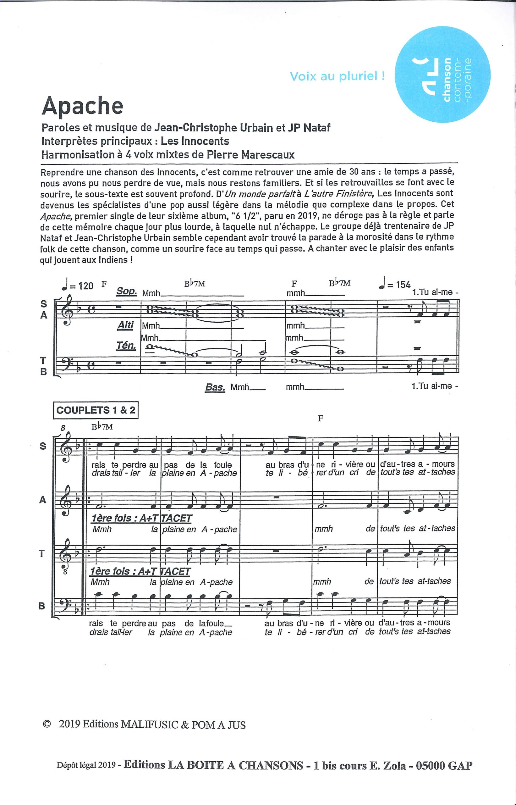 Paroles et musique : J.C Urbain / J.P Nataf Harmonisation : Pierre Marescaux