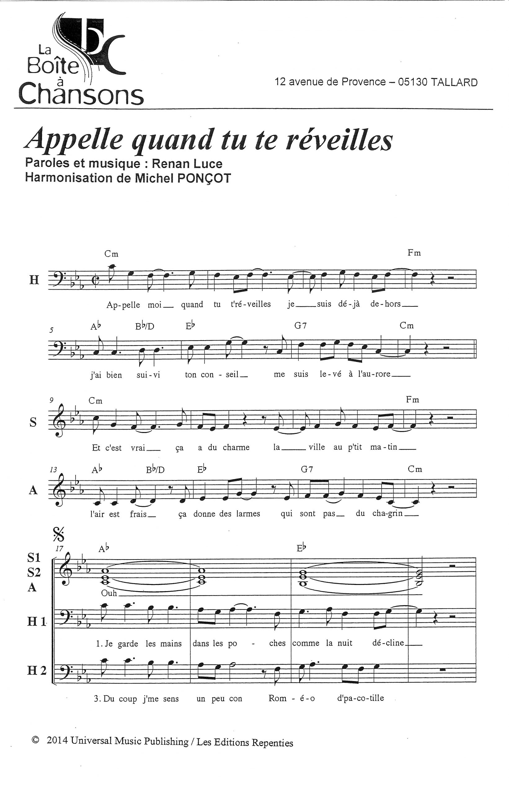 Paroles et musique : Renan LUCE Harmonisation : Michel PONCOT