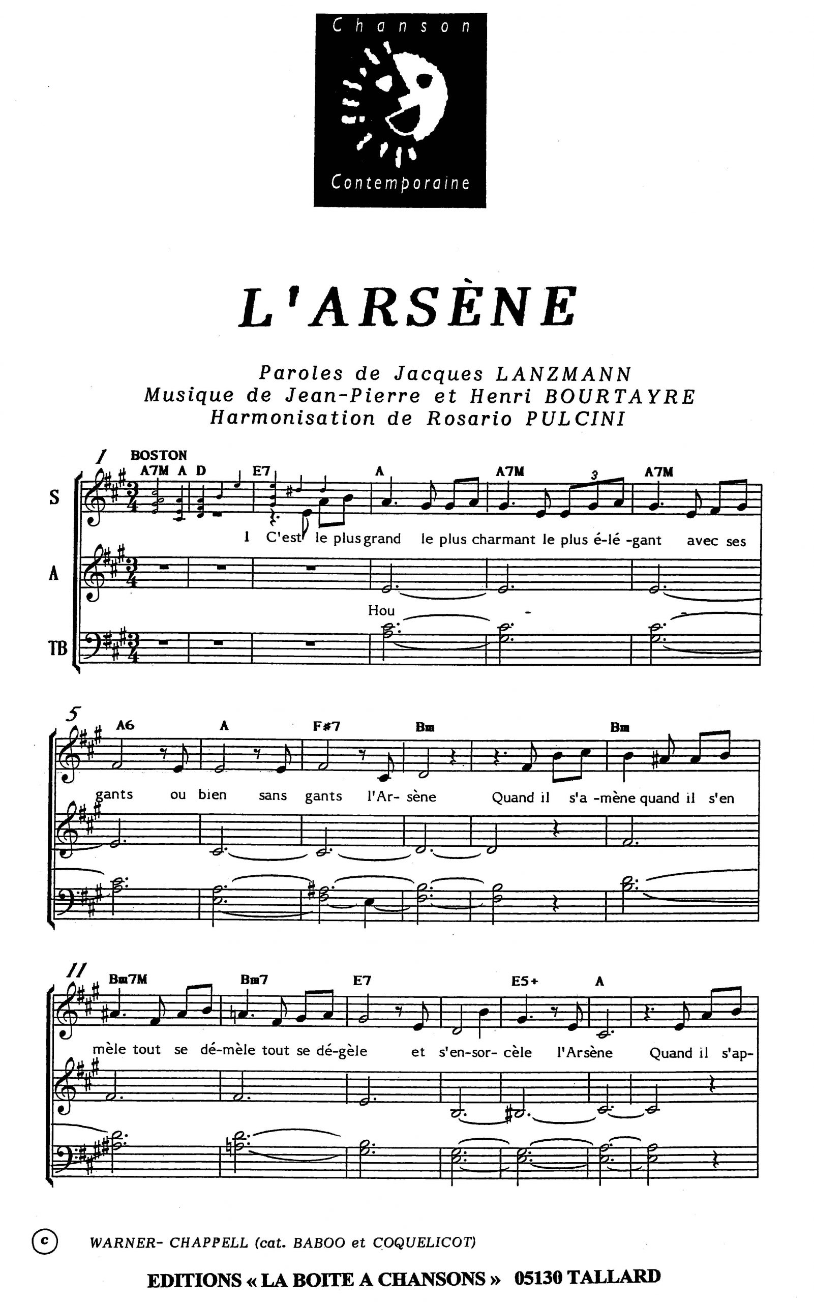 Paroles et musique de LANZMANN/BOURTAYRE Harmonisation : Rosario PULCINI