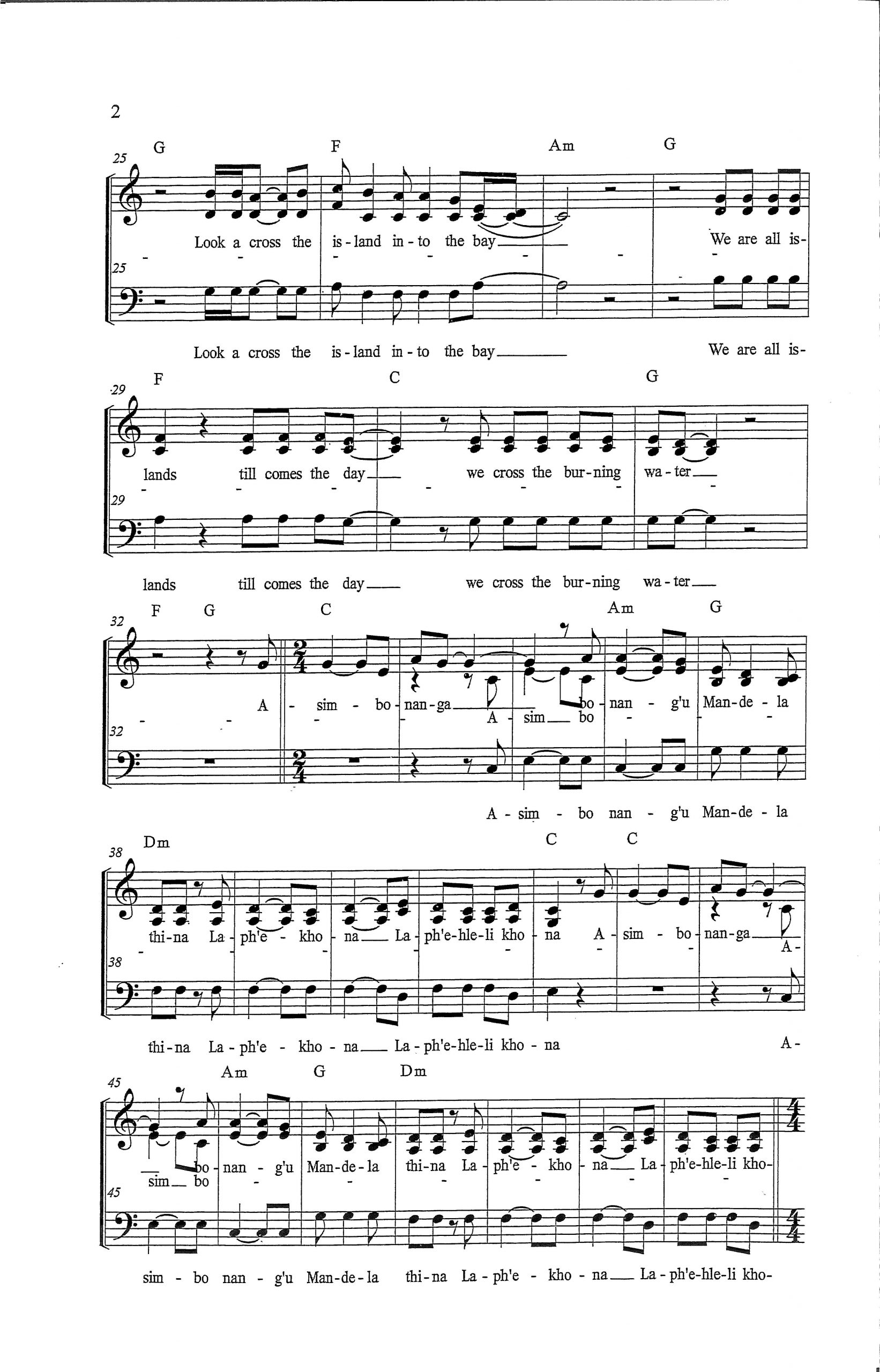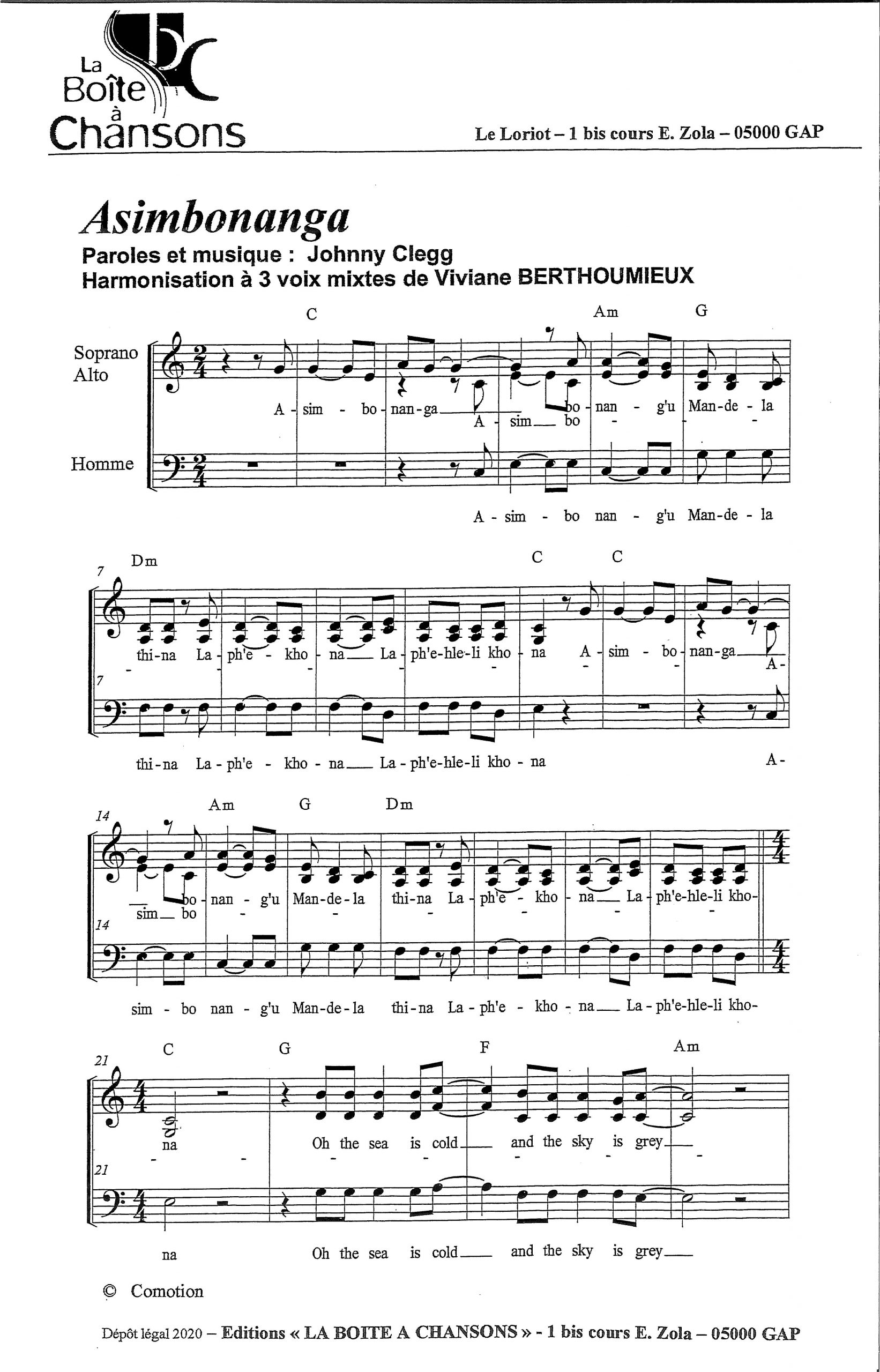 Paroles et musique : J. Clegg Harmonisation : Viviane Berthoumieux