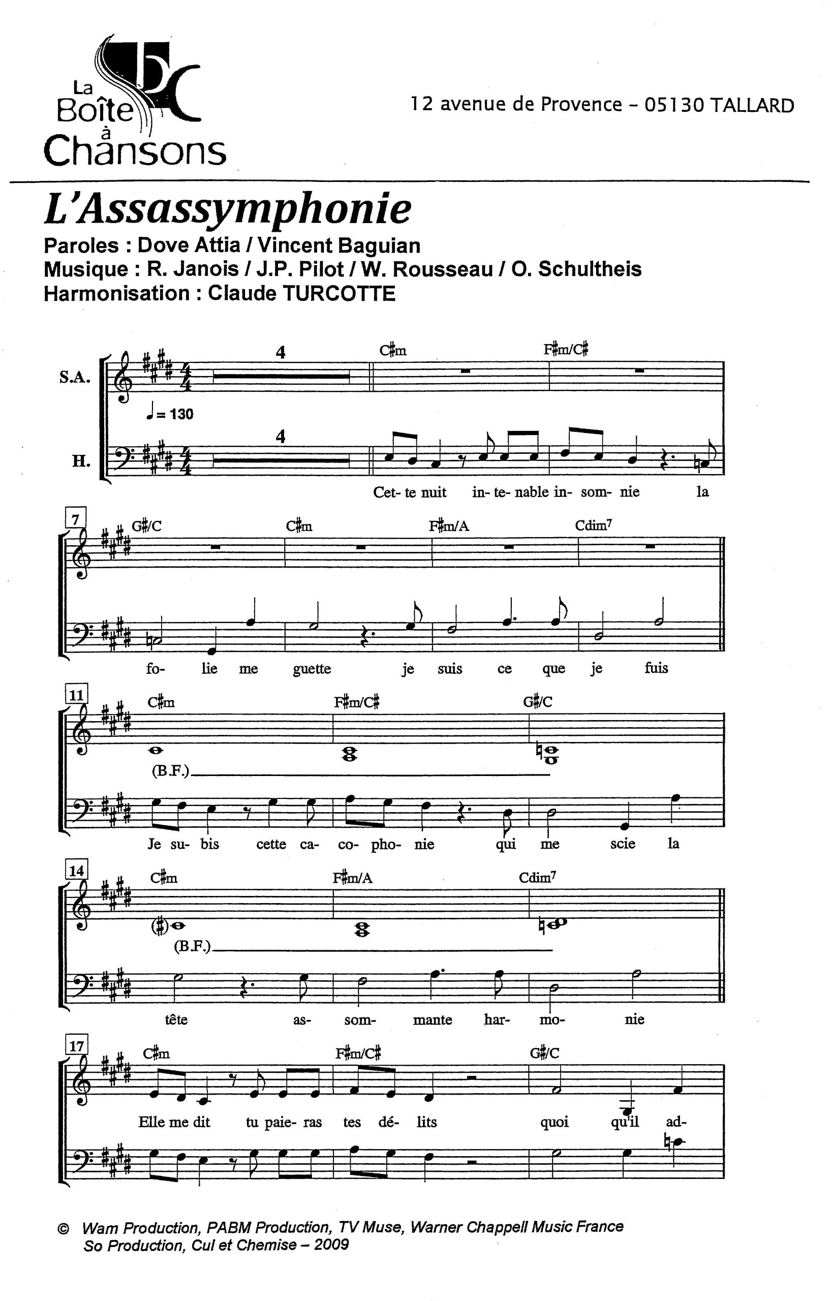 Paroles et musique de ATTIA/SCHULTHEIS Harmonisation : Claude TURCOTTE