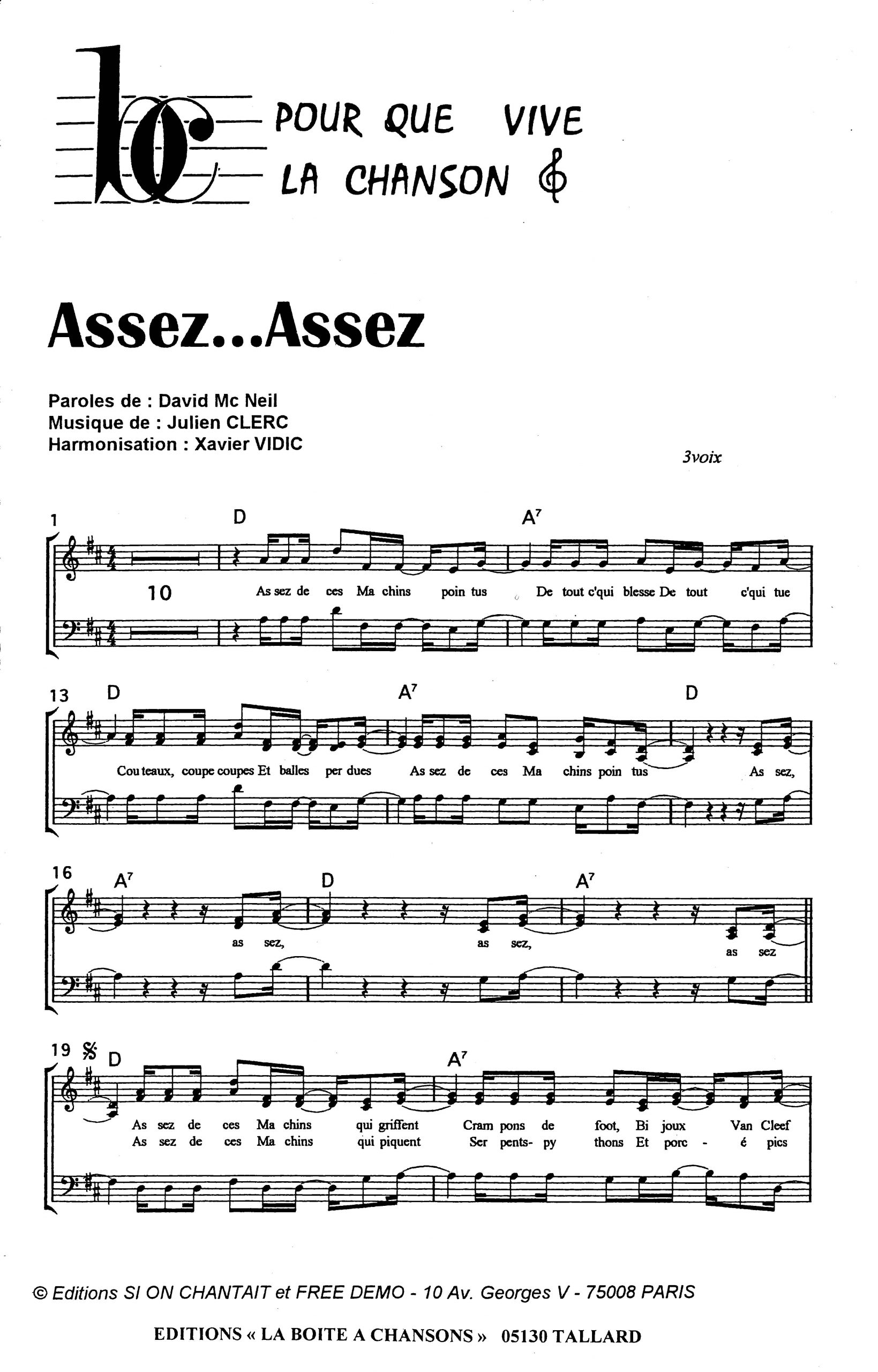 Paroles et musique de NEIL/CLERC Harmonisation : Xavier VIDIC