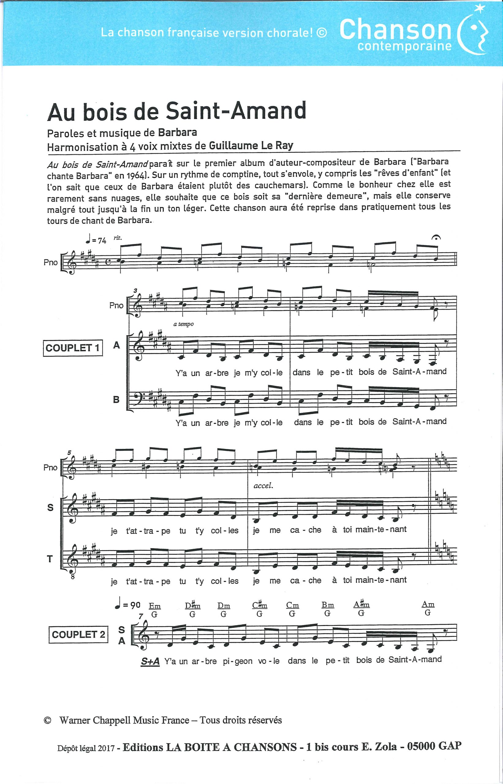 Paroles et musique : Barbara Harmonisation : Guillaume LE RAY