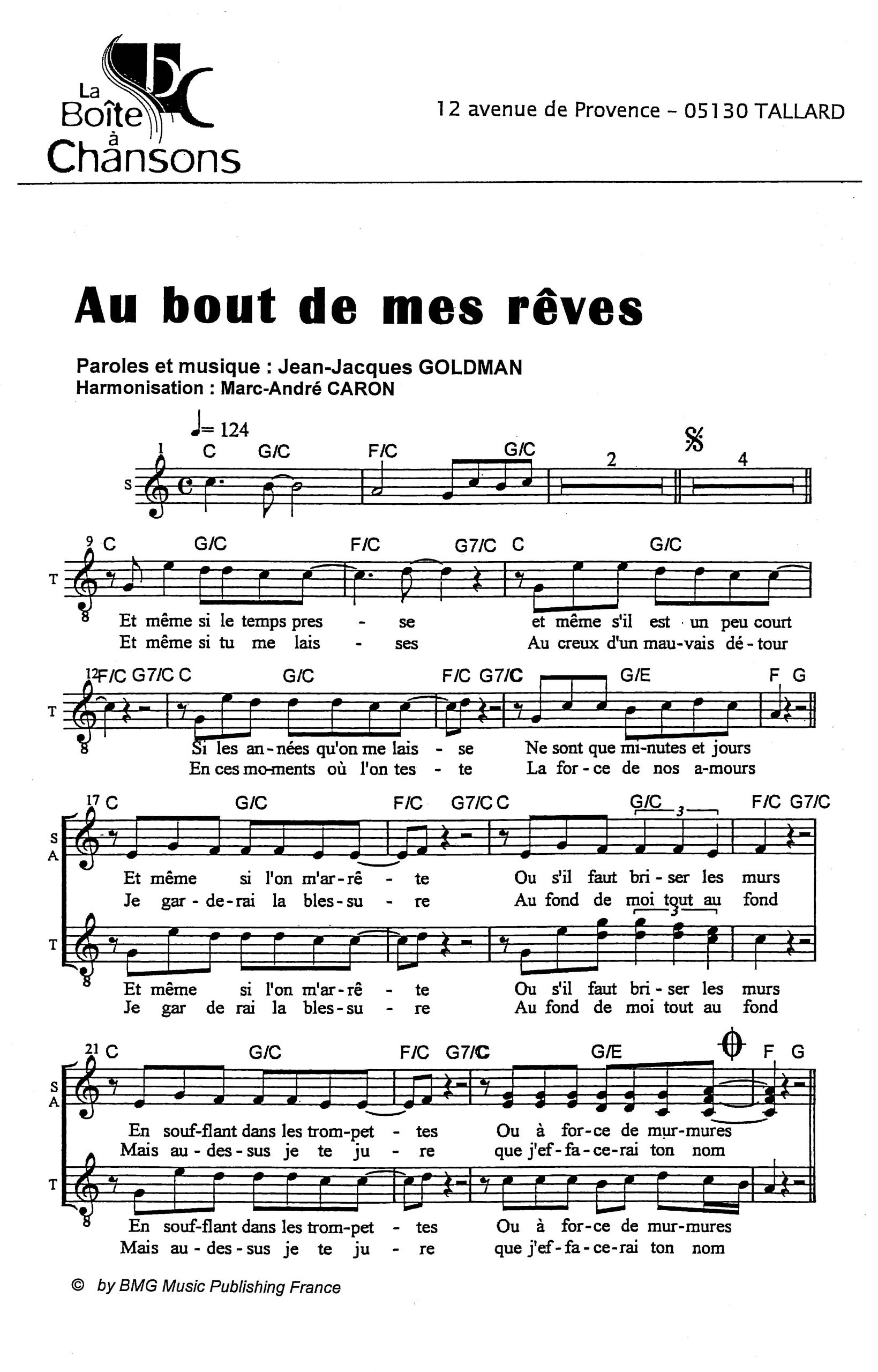Paroles et musique de GOLDMAN Harmonisation : Marc André CARON