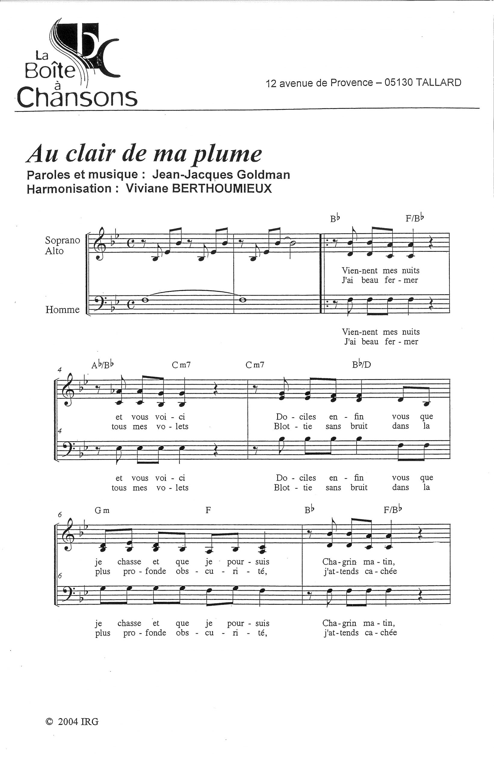 Paroles et musique : Goldman Harmonisation : Viviane BERTHOUMIEUX