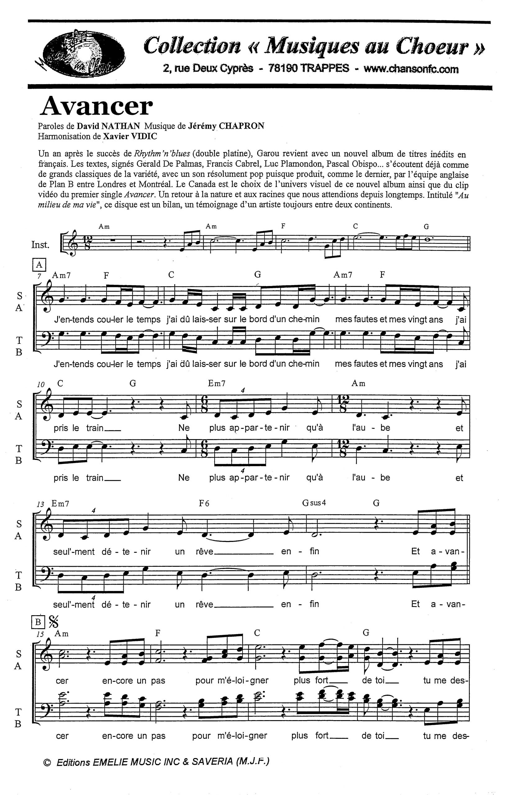Paroles et musique : NATHAN/CHAPRON Harmonisation : Xavier VIDIC