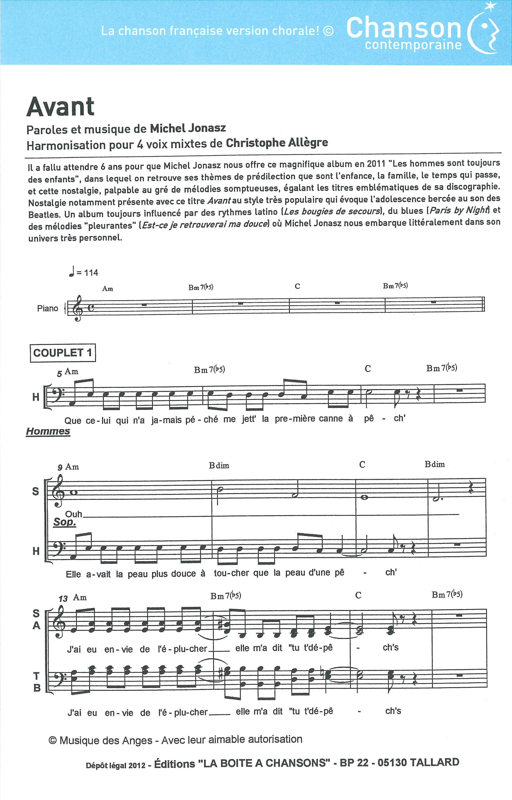Paroles et musique de JONASZ Harmonisation : Christophe ALLEGRE