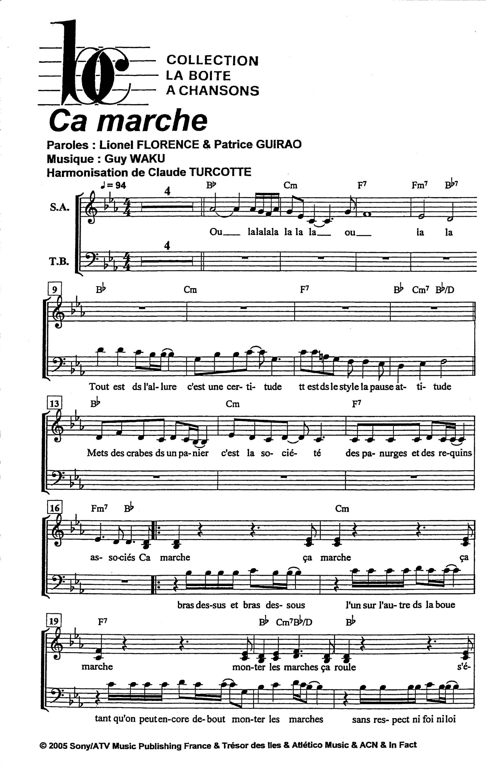 Paroles et musique de FLORENCE / GUIRAO / WAKU Harmonisation : Claude TURCOTTE
