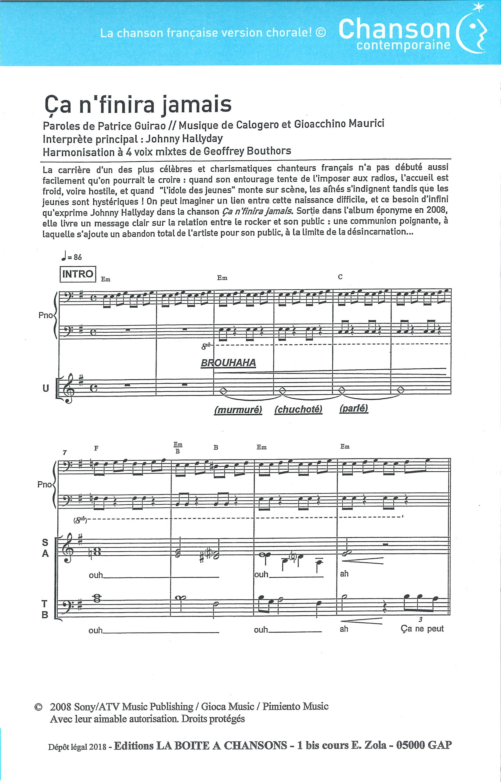 Paroles et musique : P. Guirao / Calogero / G. Maurici Harmonisation: Geoffrey Bouthors