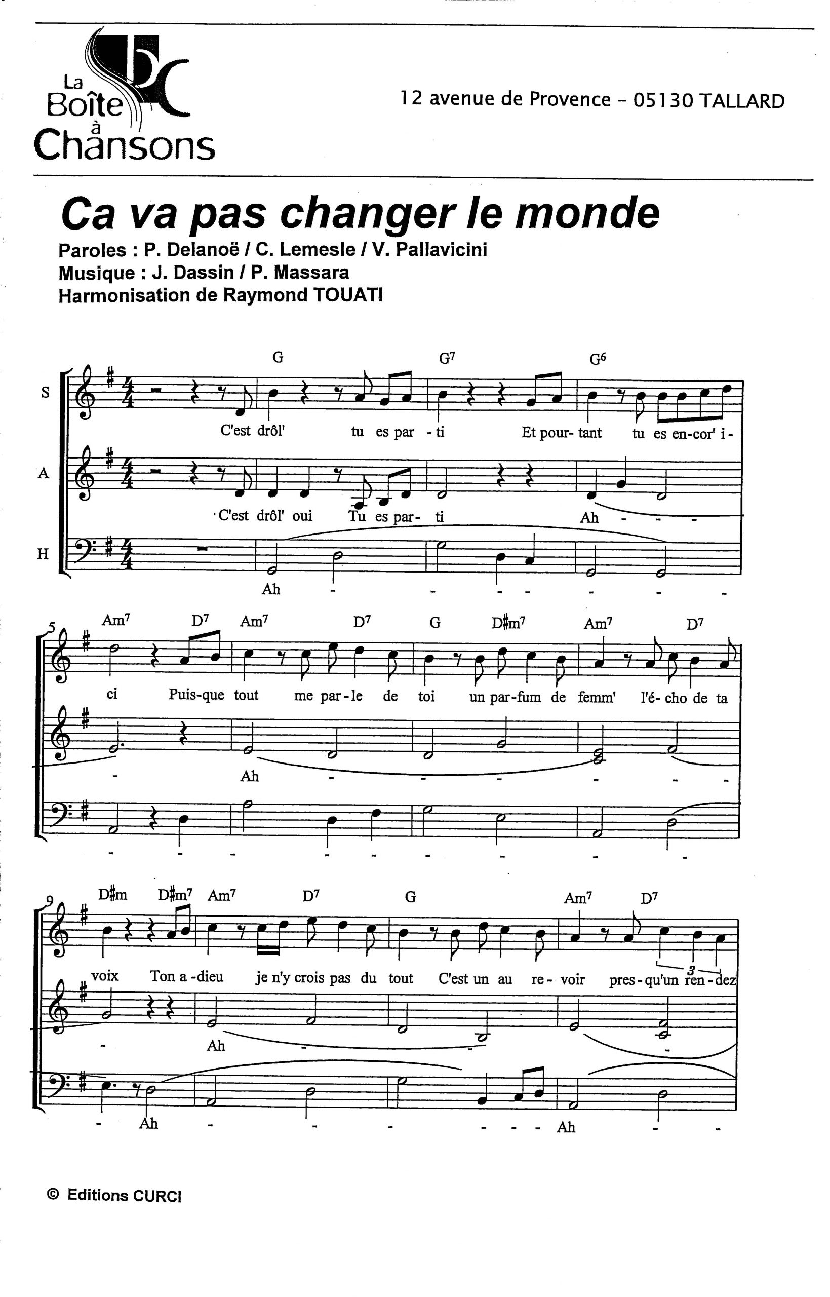 Paroles et musique de DELANOE/LEMESLE/DASSIN Harmonisation : Raymond TOUATI