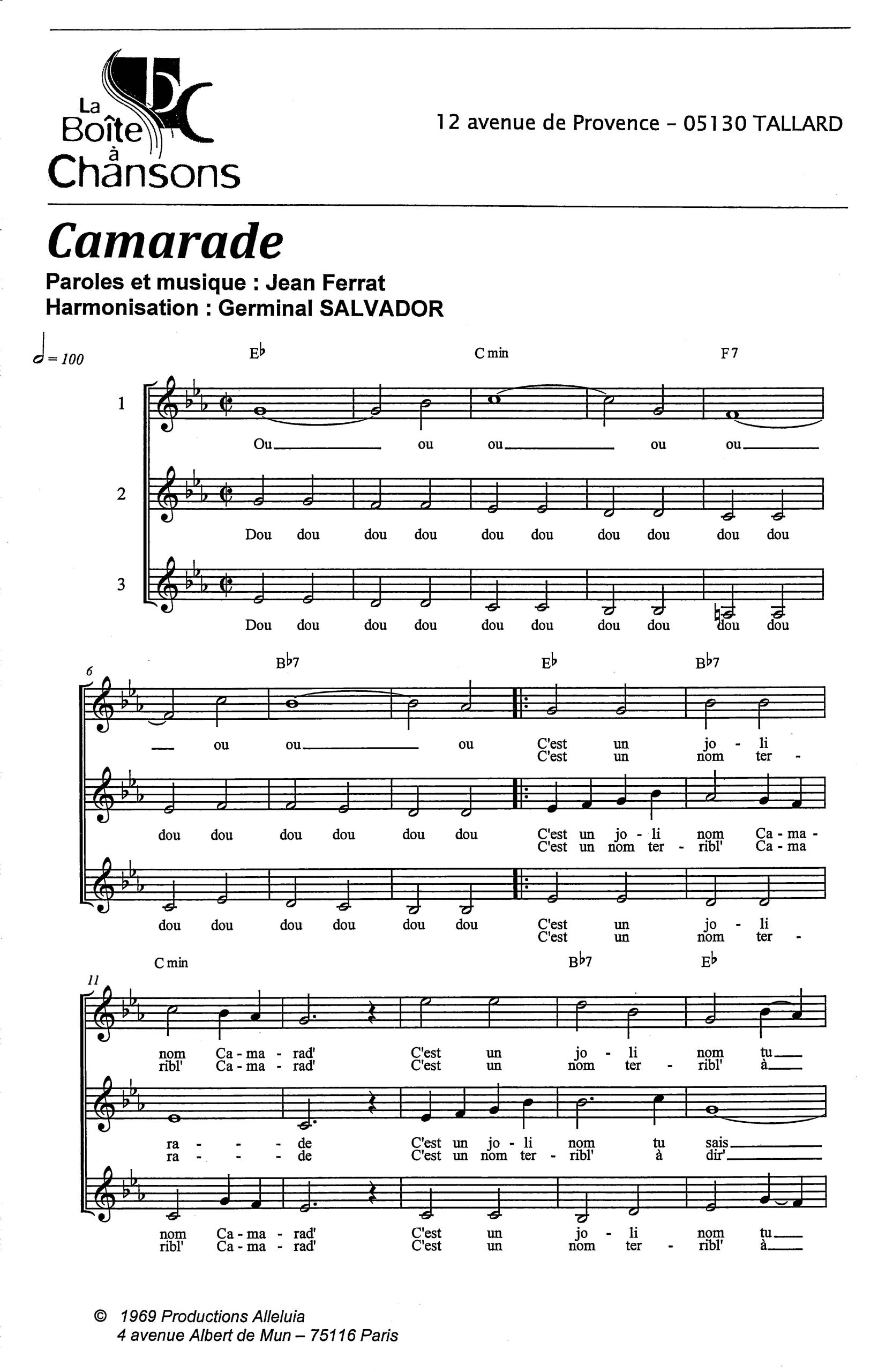 Paroles et musique de FERRAT Harmonisation : Germinal SALVADOR