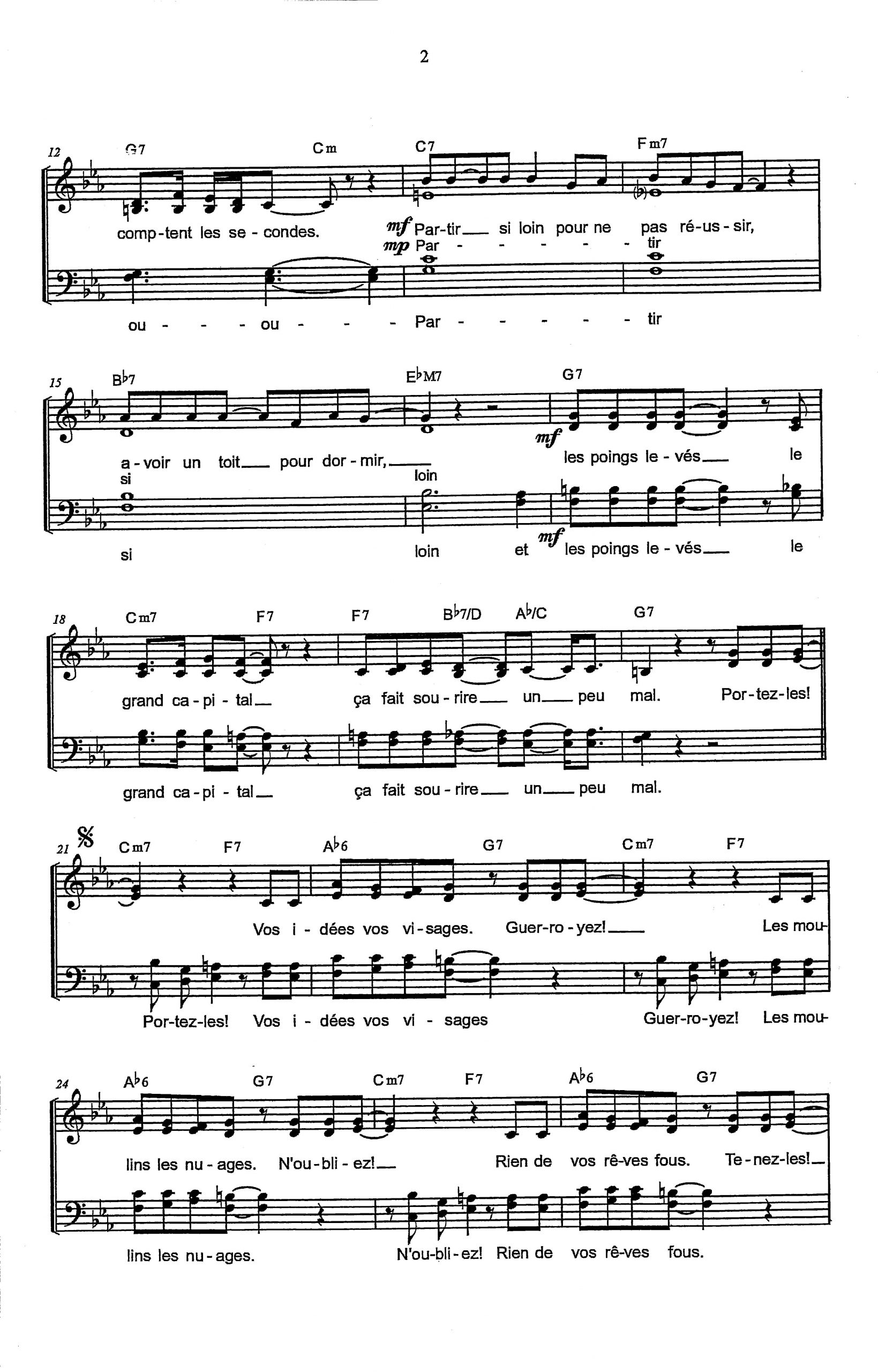 Paroles et musique : B. Lavilliers Harmonisation : Emmanuel PATERNE
