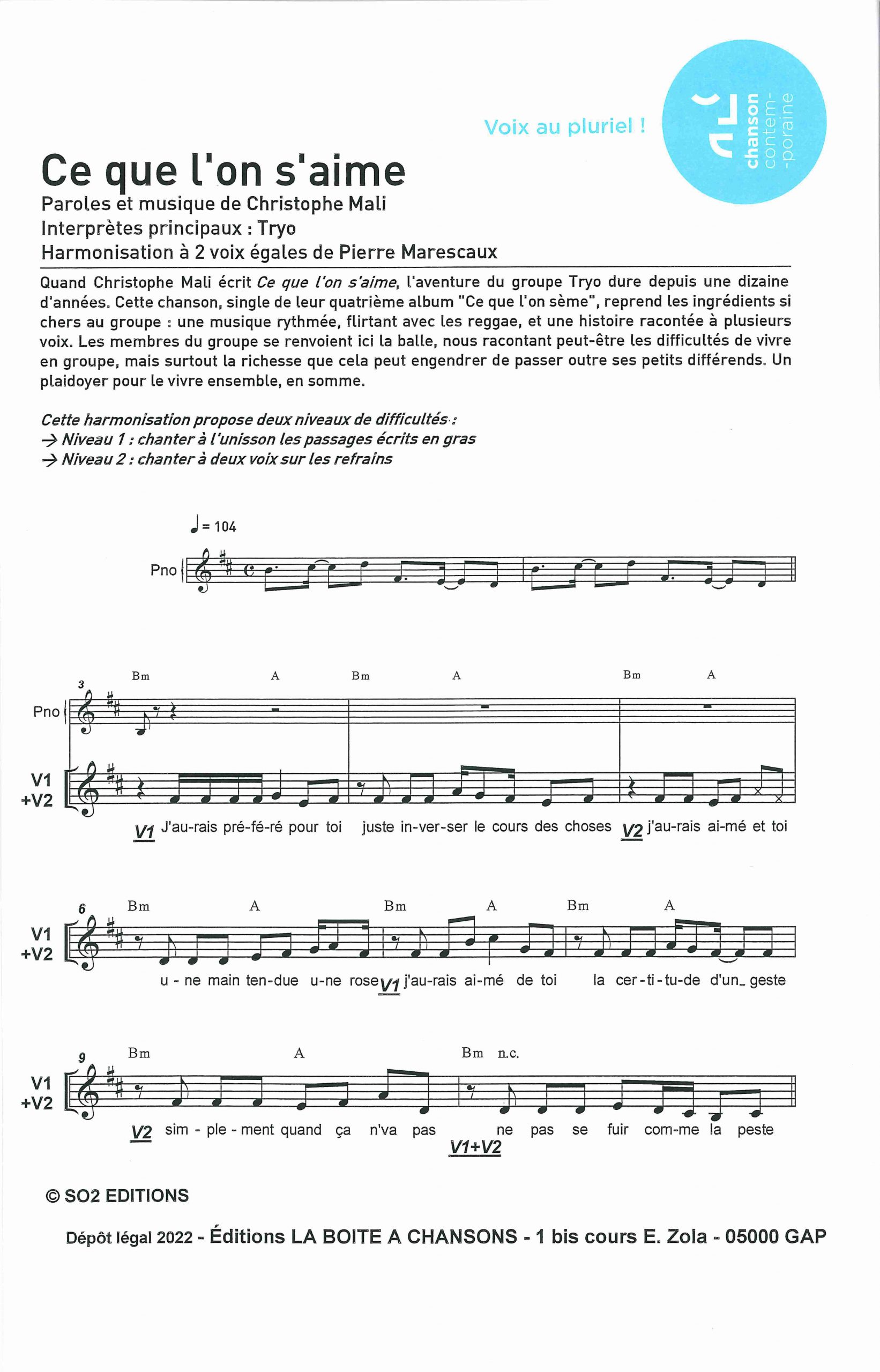 Paroles et musique : C. Mali Harmonisation : Pierre Marescaux